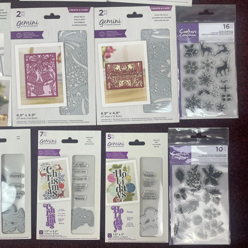 Lot of 18 Crafters Companion Gemini Christmas Stamp Die Create A Card Papercraft Brand new factory sealed. Lot of 18 various Gemini Crafter's Companion sets - Papercraft, Stamp & Die, Create-A-Card, Elements, etc. You will receive everything shown in pictures. All items are Guaranteed 100% Authentic ! - U S A SELLER - Check out my feedback and buy with 100% confidence!