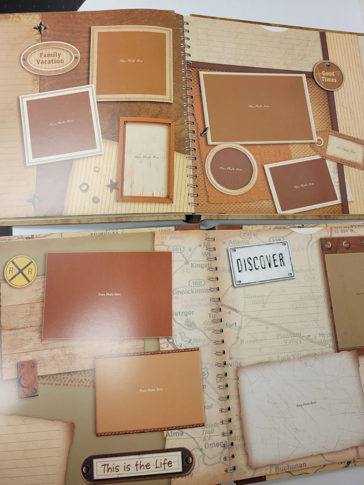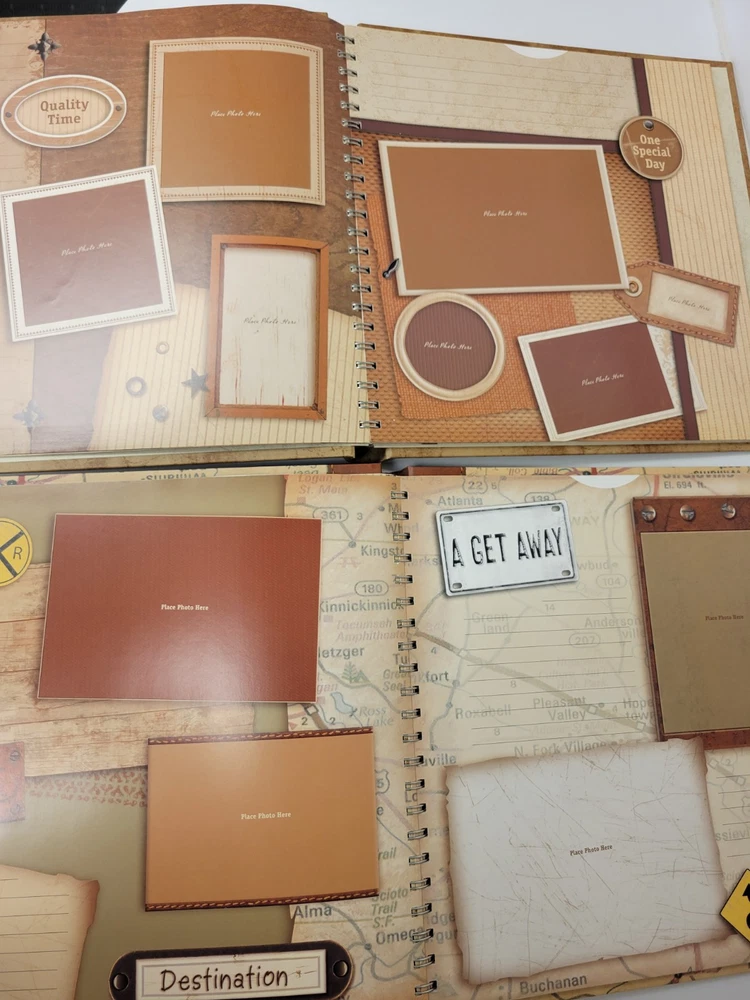 The product is a set of two brand new memory books designed for capturing family memories and road trip adventures. These 12x12 scrapbook albums feature a multi-color theme ideal for preserving cherished moments with loved ones. Handmade details are not specified, making these albums a convenient option for organizing and displaying photos and mementos from family gatherings and travel experiences. Perfect for those looking to create lasting keepsakes of special moments and adventures. Reduced shipping on multiple orders.