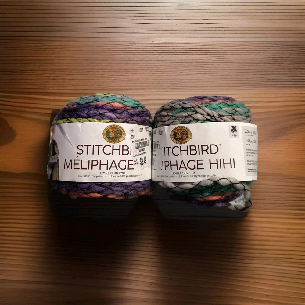 Elevate your knitting and crochet projects with the Lion Brand StitchBird yarn, a vibrant and bulky blend of acrylic and wool. This lot includes two cakes of yarn in a stunning Swallow color, each weighing 3.5 ounces with 131 yards of knitting fiber. Perfect for creating cozy and chunky textures, this yarn is ideal for crafting thick scarves, hats, and blankets. The Lion Stitchbird product line is known for its high-quality and durable yarn, and this lot is no exception. The unique blend of acrylic and wool creates a soft and flexible texture that is perfect for any project. Whether you're an experienced knitter or just starting out, this lot of Lion Brand StitchBird yarn is sure to inspire your creativity and enhance your crafting skills.