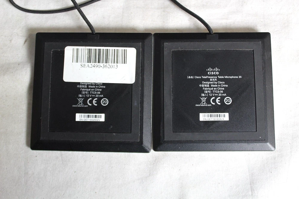 This Listing is for a Lot of 2 Cisco Telepresence Table Mic 20. Items May Have Some Scuffs, Scratches, etc. Please View Pictures of Actual Items to See Condition. Listing Includes: Lot of 2 Cisco Telepresence Table Mic 20. Everything Comes as Pictured and Described. No Other Parts Included. Please View Pictures. ***30 DAY WARRANTY ON ALL EQUIPMENT, UNLESS NOTED OTHERWISE.*** PLEASE MAKE SURE SHIPPING ADDRESS IS CORRECT. ***PLEASE CONTACT US Via "Contact Seller" AND SELECT "I have a question about using my item or I want to send the seller a message" IMMEDIATELY WITH ANY ISSUES YOU MAY HAVE WITH ANY PURCHASE BEFORE OPENING A CASE FOR RETURN.*** RETURN POLICY: Returns will only be accepted within 30 days of when you receive the item. If you have any issues or problems with anything you have purchased, please contact us directly first as we are more than willing to assist you in finding a solution to your problem or concern before you open a return case. When returning items, please make sure the item is in a similar condition when sold, and includes all parts and accessories, including cords and cables. Failure to do so may result in the deduction of the cost of the missing item(s) from your refund. WARRANTY INFORMATION: We offer a 30-day warranty on all New, Used, and Refurbished items and purchases. Please contact us within 30 days of receiving your item with any problems or concerns. Refurbished Phones come with a 1-year replacement warranty. This applies to refurbished phones only. Items sold as "For Parts Or Repair" or any variation thereof are not covered by this warranty.