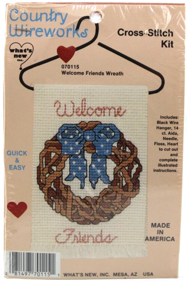 Lot of 2 Cross Stitch Kits Country Wireworks Geese Heart & Friends Wreath Sealed New Vintage 1980's LOT OF 2 VINTAGE NEW SEALED CROSS STITCH KITS CONTAINS; 070124 GEESE WITH FLORAL HEART CROSS STITCH KIT 070115 WELCOME FRIENDS WREATH CROSS STITCH KIT QUICK AND EASY INCLUDES BLACK WIRE HANGER, 14 CT AIDA, NEEDLE, FLOSS, HEART TO CUT OUT COMES WITH COMPLETE ILLUSTRATED INSTRUCTIONS MADE IN AMERICA 1980S SEALED NEW, MINOR SIGNS OF SHELF WEAR TO EXTERIOR PLASTIC WRAP WOULD MAKE A GREAT GIFT ✨✨✨✨✨✨✨✨✨✨✨ The VinKris Collection is committed to delivering a great experience! We will ship to you with the greatest of care All items are shipped in sturdy boxes We use packing materials appropriate for the product to help ensure safe delivery Shipments to the United States and Protectorates are handled via USPS International shipments will ship via Ebay's International Shipping Program All packages are shipped within 1 business day of payment We ship daily Monday through Saturday Worry free purchases, we stand behind everything we sell with free 30 day returns We have thousands of happy customers and our goal is 100% customer satisfaction We are happy to answer any questions