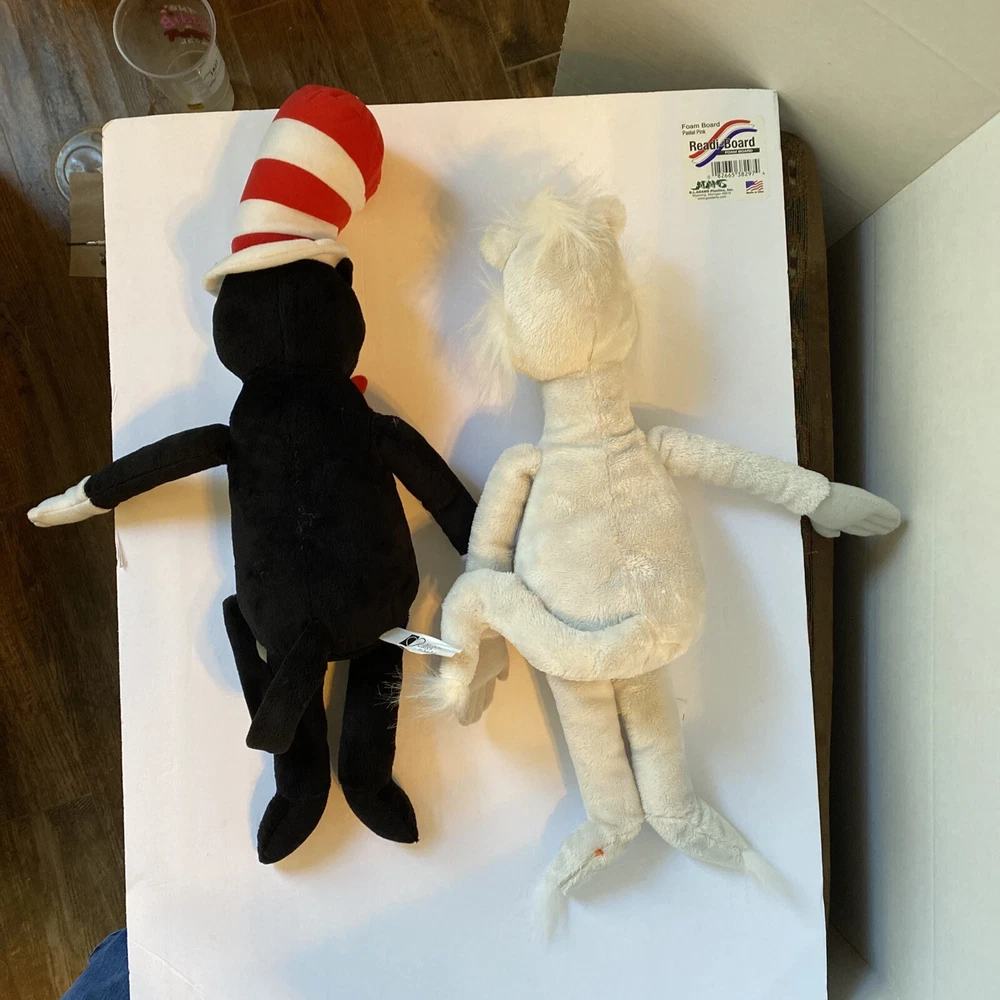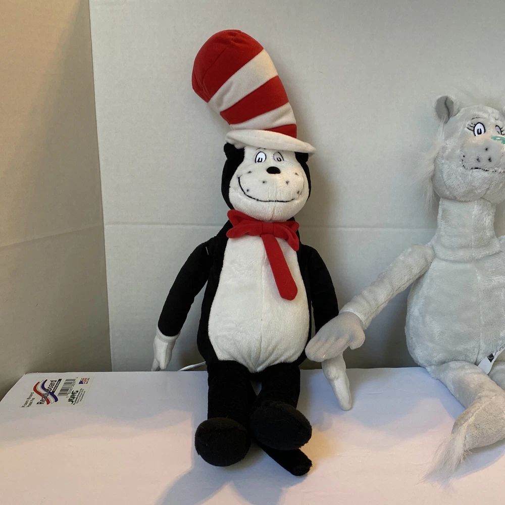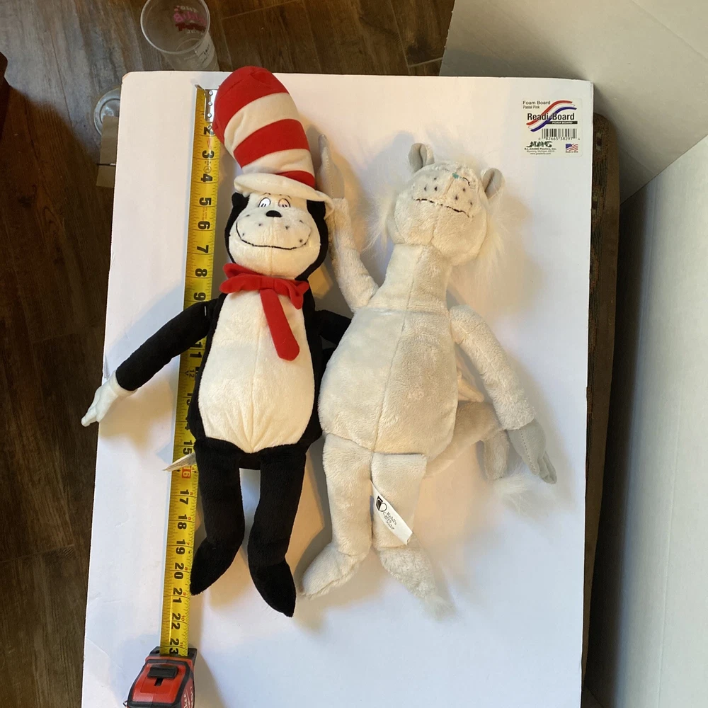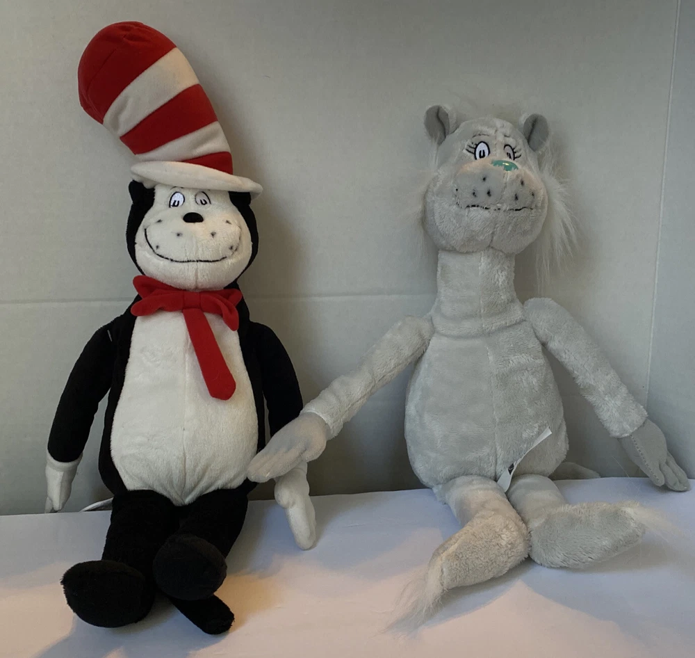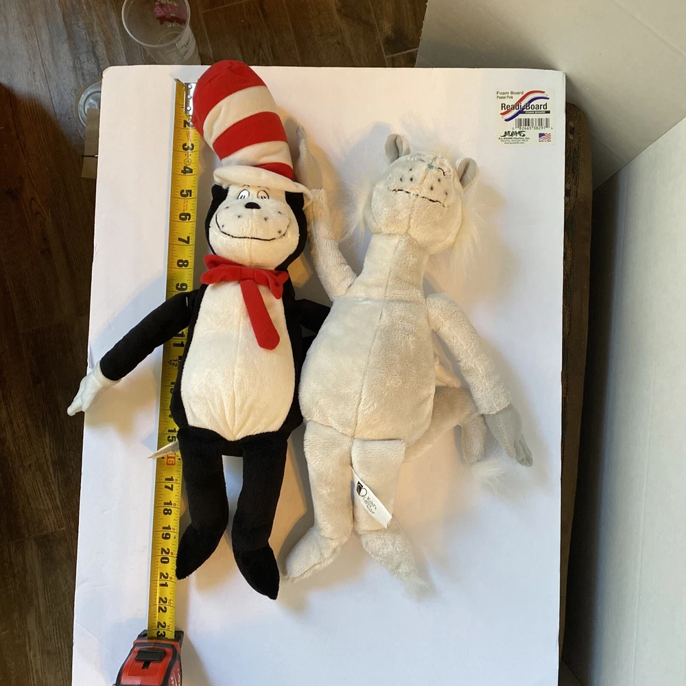 This lot includes two Kohls Cares Dr. Seuss character plush toys, one featuring Cat in the Hat and the other featuring Natch. Both stuffed animals are medium-sized, measuring between 14-24 inches. The toys are multicolored and perfect for Birthdays or any special occasion. The brand of these toys is Kohls Cares and they were made in China. The age level recommended for these toys is 3-4 years old, making them perfect for young children. These plush toys are a part of the beloved Dr. Seuss character family. Finally, this lot comes in a custom bundle that is perfect for fans of Dr. Seuss and stuffed animals.