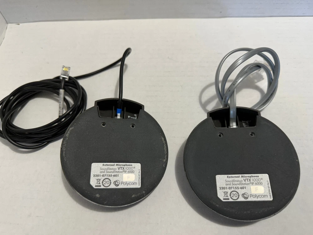 Lot of 2 -- Polycom External Microphone for SoundStation VTX 1000 & IP 6000 **PLEASE READ!**: Message us before you open a eBay return case. Opening a return case negatively affects a seller's rating. If you have any issues please let us know, We will work quickly to resolve them. CONTACT: We answer emails Monday through Friday 9:30am to 03:30pm. We are closed over the weekends. We ship items out within 3 business days of payment. We do not ship any items out over the weekends. CONDITION DESCRIPTION: WE DO OUR BEST TO TRY AND CATCH ANY AND ALL FLAWS. BUT THINGS DO SOMETIMES GET BY US AND WE ARE SORRY FOR THAT WHEN IT DOES HAPPEN. WE TRY AND TEST TO OUR BEST ABILITY. WE DO LIST FROM WORKING ENVIRONMENT OR A COMPANY STATING TO US THEY WORK, AND SOMETIMES ALL WE CAN DO TO VERIFY IS PLUG AN ITEM IN. WE TRY AND LIST ACCURATELY HOW WE TESTED. WITH ANY ELECTRONICS THEY COULD WORK FOR US AND THEN REBEL AND NOT WORK AFTER SHIPMENT. IN ANY CASE WE TRY AND OFFER AS MANY ITEMS WE CAN AS 30 DAY RETURNS. JUST PLEASE CONTACT US FIRST TO SET UP A RETURN. WE ARE SELLING USED ITEMS SO PLEASE BEWARE THEY COULD HAVE COSMETIC ISSUES OUR HUMAN EYES DID NOT SEE OR CATCH. About Us: We are a Family Owned and Operated e-Waste company located in Massachusetts. We strive to repurpose and reuse all items that come into our facility. We test items to the best of our ability and always explain how much testing was done on an item in the condition description. Third Party International Shipping Companies: If you use a 3rd party International shipping company to get items to your country-please note -there are no guarantees from eBay or Paypal for these transactions. Once the item is delivered to these companies any issues you have at that point you have to file disputes with the shipping company you used. You may contact us prior to getting approval to bid and or buy. thanks Customer Service: If for any reason you feel you cannot leave us 5-star feedback, please contact us so we can make it right. Customer satisfaction is our top priority and is needed to keep our business alive. Please message us prior to leaving feedback or opening a case so we can do our best to resolve whatever issue you have. We want to gain your repeat business. We answer emails Monday through Friday 9:30am to 03:30pm. We are closed over the weekends. We ship items out within 3 business days of payment. We do not ship any items out over the weekends. RETURNS: We have a 30-day inspection period for items described as working and offer returns on most items. We do accept returns in the event your item arrives DOA or is not as described, as long as returns are offered at the time of purchase on the listing. We try to fully examine everything prior to listing and thoroughly describe each item, but sometimes things slip through the cracks, especially when dealing with used merchandise. We do not accept returns on items that have been tampered with or altered in any way. If any items have asset tags those tags must be attached in order to return. SHIPPING: IF FREE SHIPPING OR FLAT RATE SHIPPING IS OFFERED ON AN ITEM, THAT SHIPPING PRICE IS FOR THE 48 CONTIGUOUS CONTINENTAL US STATES ONLY. PLEASE CONTACT FOR RATES TO YOUR AREA.