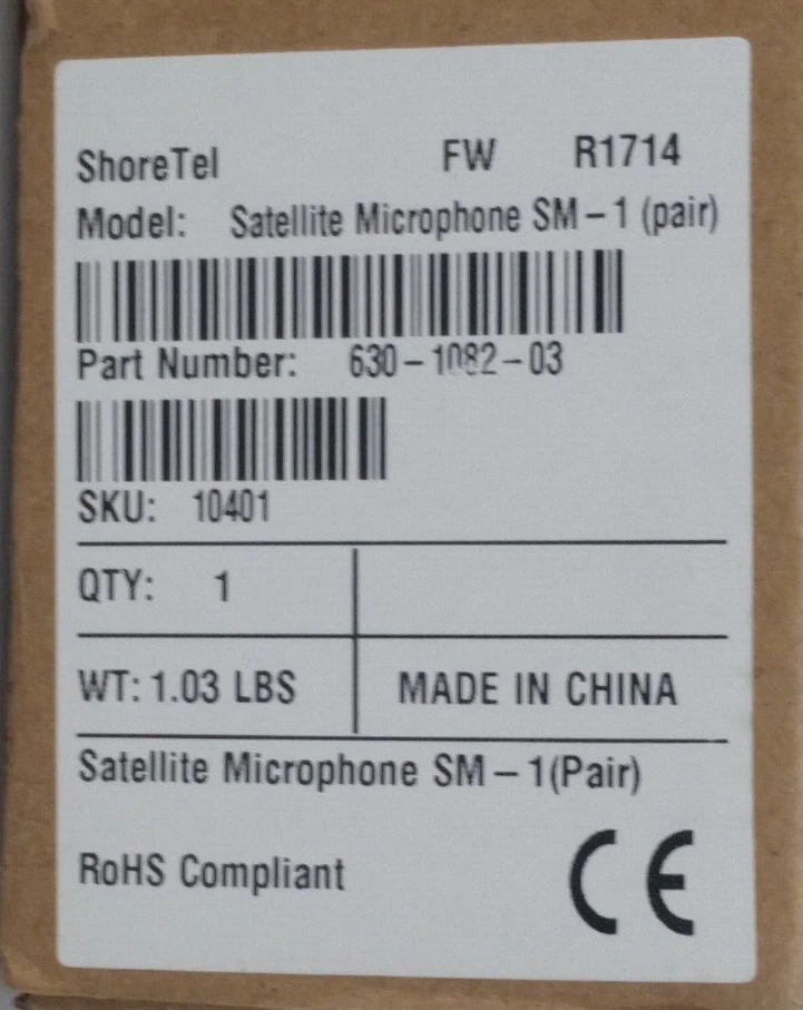 Lot of 2 ShoreTel SM-1 Satellite Extension Tabletop Microphones Lot of 2 ShoreTel SM-1 Satellite Extension Tabletop Microphones New Open Box You will receive what you see on the pictures No more accessories included Please check the pictures PAYMENT • PAYPAL: We only accept PayPal payments from U.S. verified accounts with confirmed addresses. NO EXCEPTIONS • NON PAYING BIDDER: As per eBay guidelines, if an item is not paid for within four days after end of auction an unpaid item case will be opened. You have 4 days after that to send payment. SHIPPING These items are sensitive electronic components. We use the most care during packaging. • TRUCK FREIGHT: We use truck freight for any item over 100lbs. • If shipping is not specified you must contact us for a shipping quote before bidding. • PICK UP FEES: We welcome scheduled pickups at our location; it is free per auction. Cash only! • DAMAGE CLAIMS: Damage to merchandise during shipping MUST be reported to us immediately upon discovery. ALL ORIGINAL PACKAGING MATERIALS MUST BE SAVED and submitted at the time of pickup or inspection. • We require a signature as proof of delivery on all FedEx shipments. If you are NOT going to be available to sign for the parcel, it will be your responsibility to arrange receipt of the item. • Any item returned to us as “non-deliverable”, will require additional money for re-shipment. ABOUT US We are an eBay company specializing in computers, laptops, network components, printers and other electronics. We strive to maintain a high level of accuracy, honesty and integrity in all our transactions. FEEDBACK: We use an automated feedback response system. Feedback will only be left upon receiving feedback from the buyer. Before leaving negative feedback please contact us so we can rectify the situation. WE TAKE YOUR CUSTOMER SERVICE VERY SERIOUSLY – PLEASE GIVE US A CHANCE TO FIX THE ISSUE BEFORE YOU OPEN A CASE – WE PROMISE TO MAKE IT RIGHT! HOURS OF OPERATION: Mon-Fri 9 AM PST till 4:30 PM PST, SAT by appointment only, CLOSED Sundays. Emails will only be answered during operation hours. Thank You! GUARANTEE ∙ We guarantee everything against DOA unless the item description states the item is “untested”, “not working”, “for parts”, “as-is” or another term that would indicate the item should not be expected to work. ∙ DOA means the item will NOT turn on, power up, or run self tests as described in the auction. Our guarantee is for repair, replacement, or refund at our discretion. All claims of DOA must be made in 7 days. ∙ We adhere to eBay guidelines on money back guarantees. All claims must be made within the 30 day limit. ∙ No operating systems, drivers, or software included unless specified. ∙ We do not add or remove components from our items Items sold as pictured. ∙ No other items are included unless otherwise noted. This includes adapters, software, cables, wires, manuals, or any other item UNLESS IT IS SPECIFICALLY NOTED. Note: We Track Serial Numbers on all Items and components to prevent FRAUD