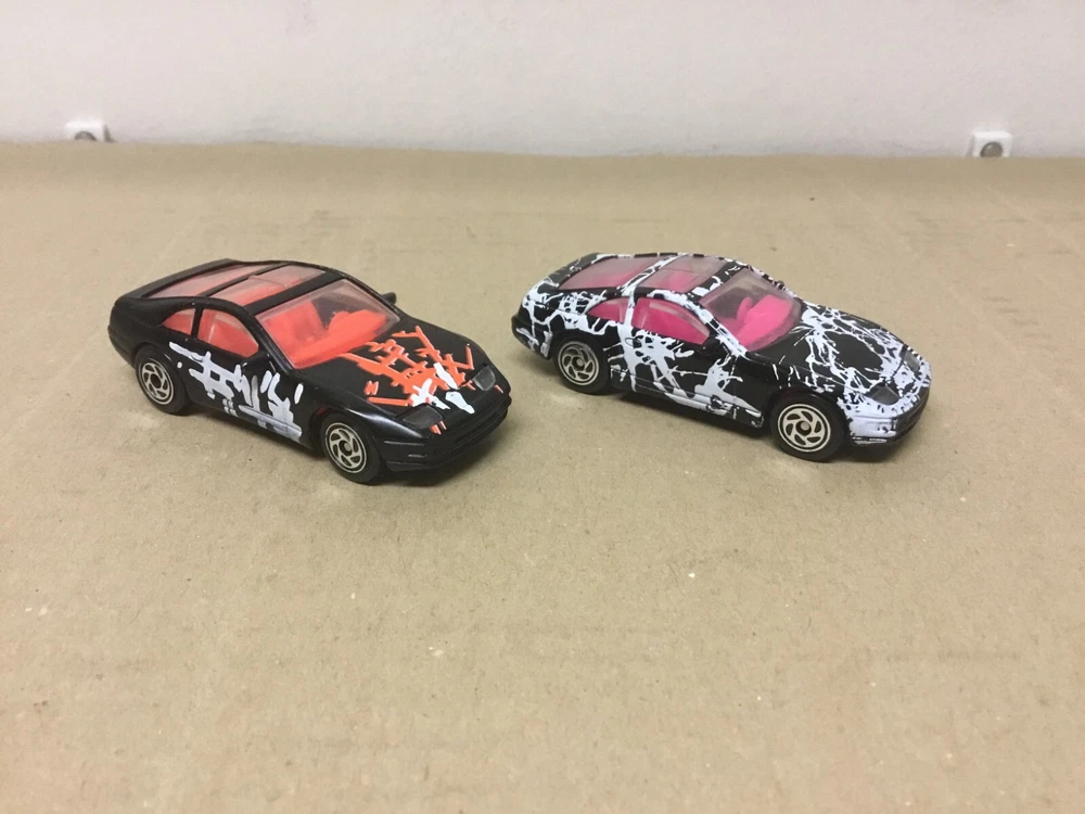 You are bidding on a lot of: 2 - Vintage Matchbox Cars - 1990 Nissan 300ZX White Splatter on Black & White / Orange on Black * No Boxes * Please check out my eBay store for cd's, one-of-a-kind autographed items, baseball - basketball - football single cards and sets, Steiner Sports autographed helmets, jerseys, baseballs, photos, display cases, supplies and much more.