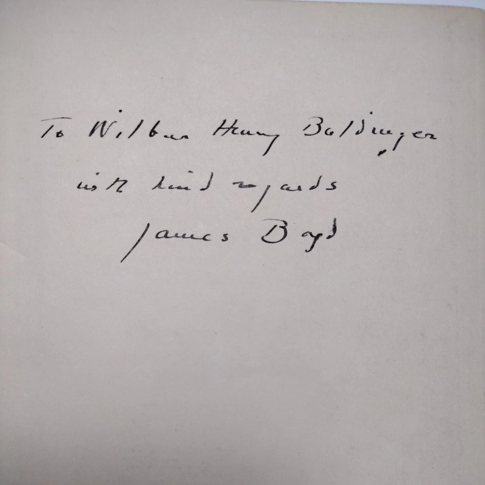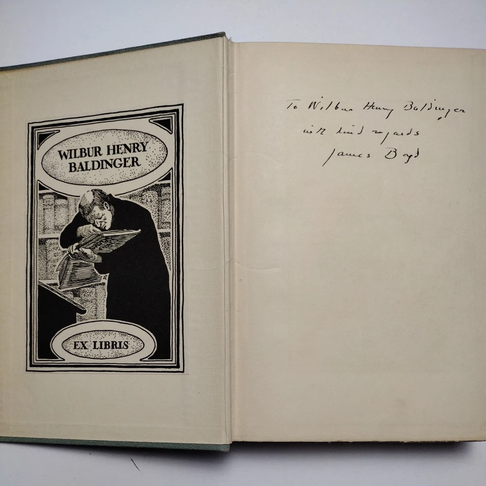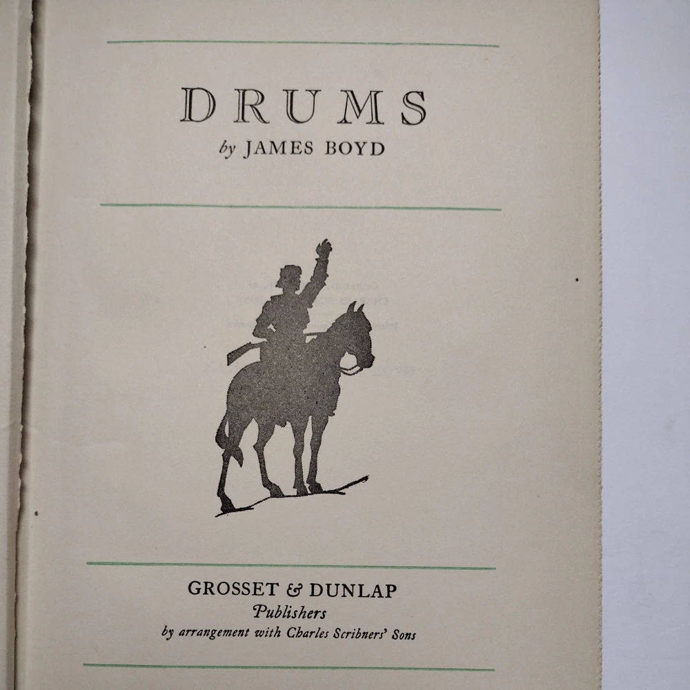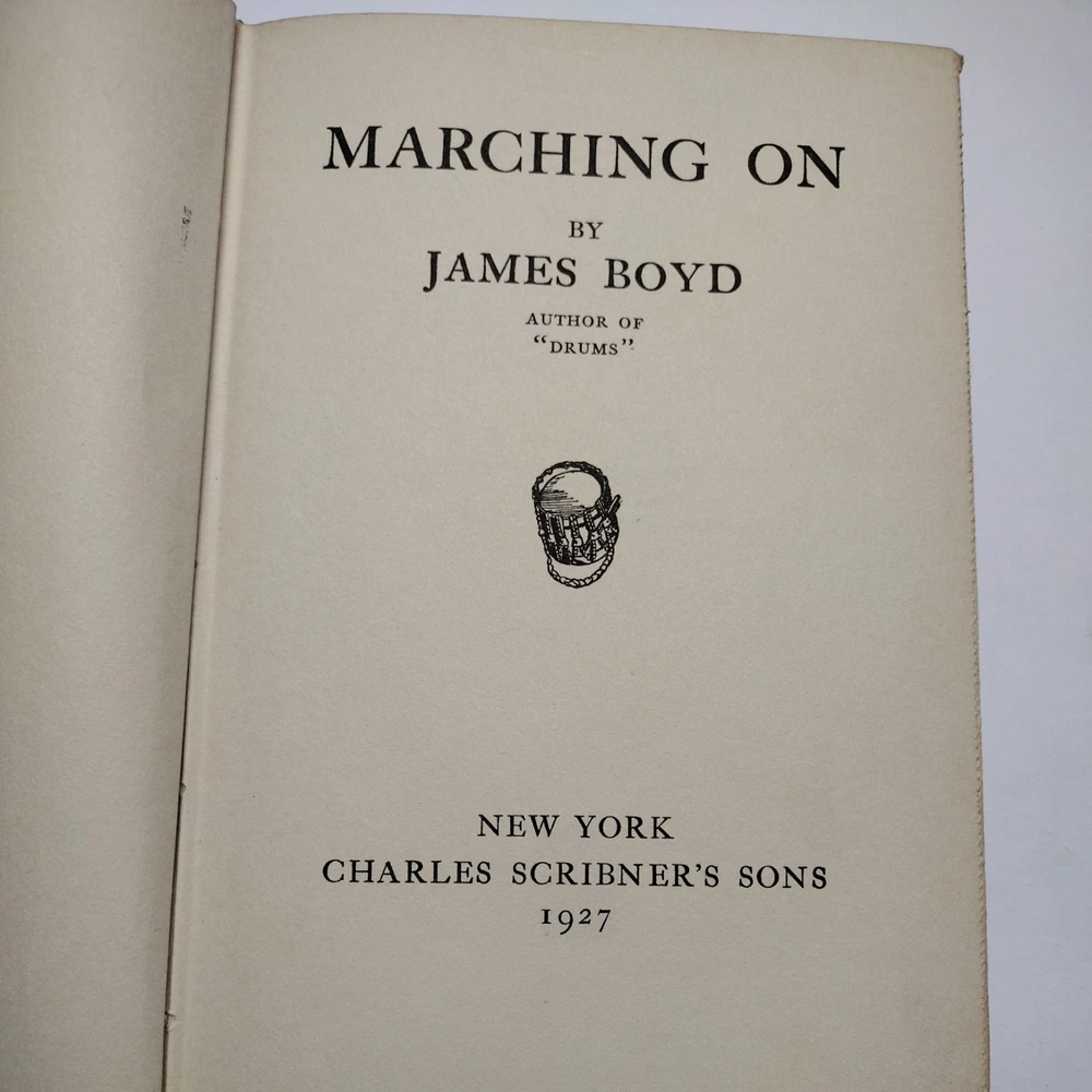 These 2 books are both signed and personalized by James Boyd. Both are in very good condition, all pages intact and unmarked, covers are sturdy. #1: "Marching On", 1st edition, published by Charles Scribner's Sons, New York 1927. The inscription reads, " To Rachel Duira Baldinger with kind regards James Boyd ". #2: "Drums" , published by Grossett and Dunlap, 1928 . The inscription reads, "To Wilbur Henry Baldinger with kind regards James Boyd ". Wilbur Baldinger's nameplate is inside the front cover. A little discoloration of the spine has taken place. There is a slight separation between the title page and the previous page due to age, but the bottom 1/3 of the page is not affected. This separation is only evident at the title page. (see photo) Please see photos for condition. Photos are an important part of the description. Open them up for a magnified view for a better understanding of color and condition. Ask any questions prior to purchasing to avoid any issues moving forward. Thank you for viewing these collectible volumes!