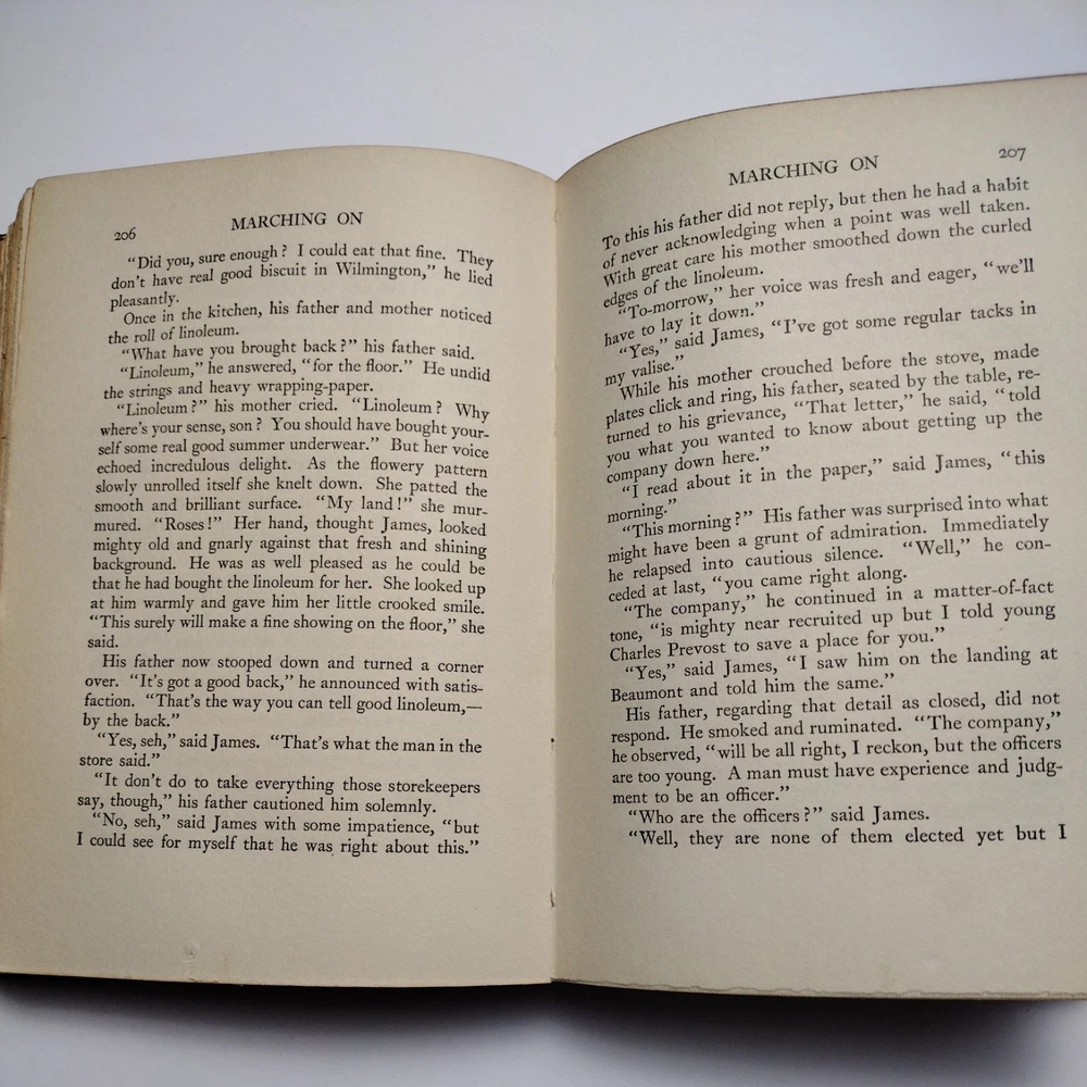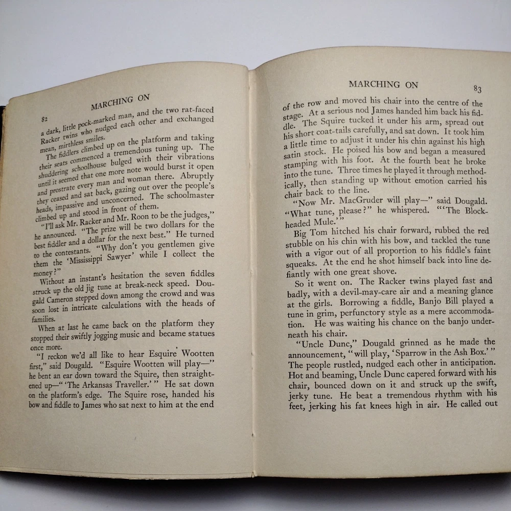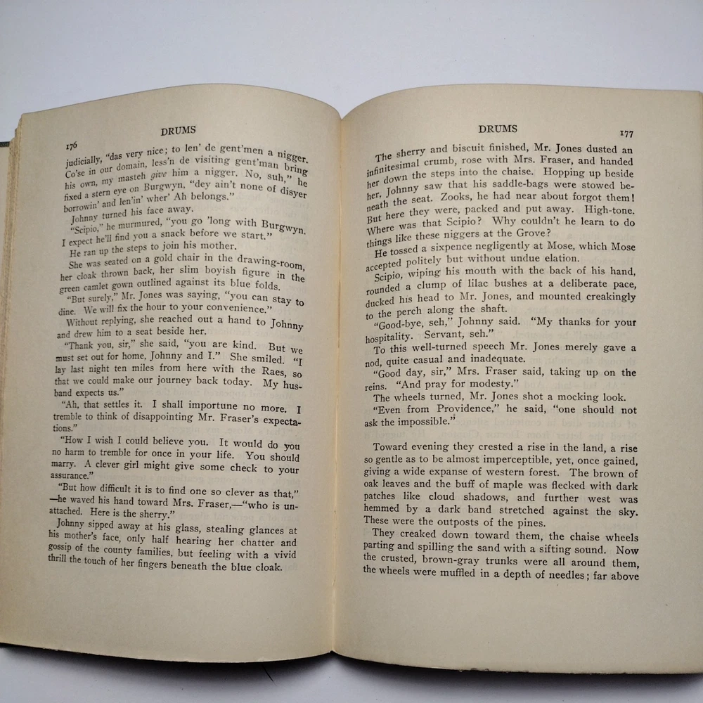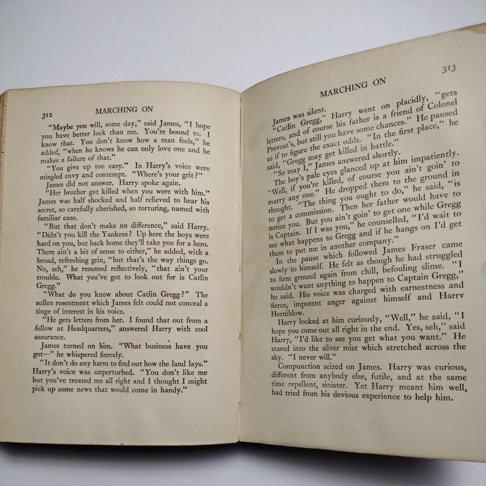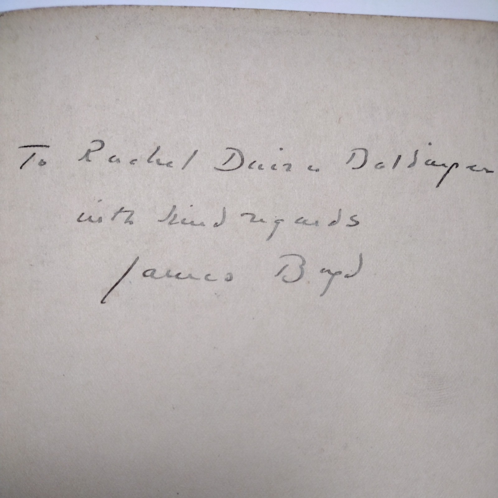 These 2 books are both signed and personalized by James Boyd. Both are in very good condition, all pages intact and unmarked, covers are sturdy. #1: "Marching On", 1st edition, published by Charles Scribner's Sons, New York 1927. The inscription reads, " To Rachel Duira Baldinger with kind regards James Boyd ". #2: "Drums" , published by Grossett and Dunlap, 1928 . The inscription reads, "To Wilbur Henry Baldinger with kind regards James Boyd ". Wilbur Baldinger's nameplate is inside the front cover. A little discoloration of the spine has taken place. There is a slight separation between the title page and the previous page due to age, but the bottom 1/3 of the page is not affected. This separation is only evident at the title page. (see photo) Please see photos for condition. Photos are an important part of the description. Open them up for a magnified view for a better understanding of color and condition. Ask any questions prior to purchasing to avoid any issues moving forward. Thank you for viewing these collectible volumes!