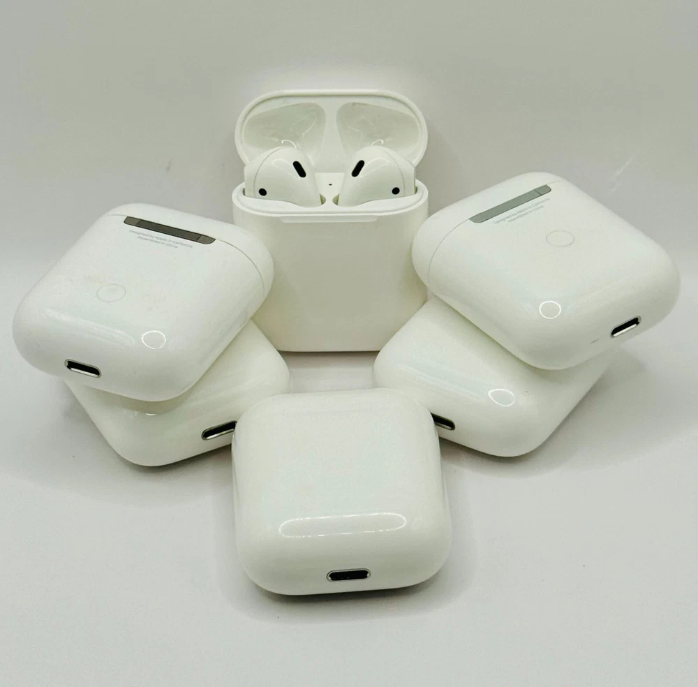 Lot of 20 Authentic Apple AirPods 1st Gen with Charging Cases & Cables - Tested & Working. These are a mix of 1st Generation A1523s and A2031s, some with the wireless charging cases. All AirPods are working & tested and in working condition (please note these are used AirPods and come with visible signs of use including dirt, scuffs, stains and scratches)