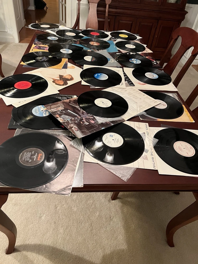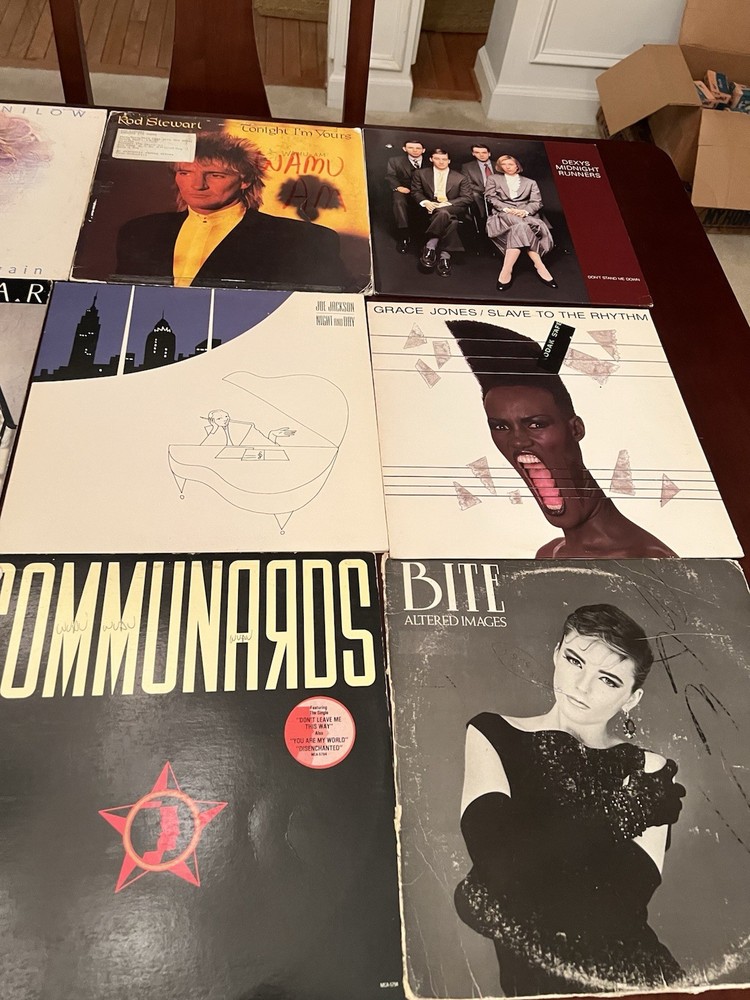 This lot of 20 vintage vinyl records features various artists from the 80s such as Bob Dylan, Simon & Garfunkel, and Toto. The records are in 33 RPM format and come in a cardboard sleeve case. With a mix of classic hits and lesser-known gems, this collection captures the sound and style of the 1980s era, making it a great addition to any music lover's collection.
