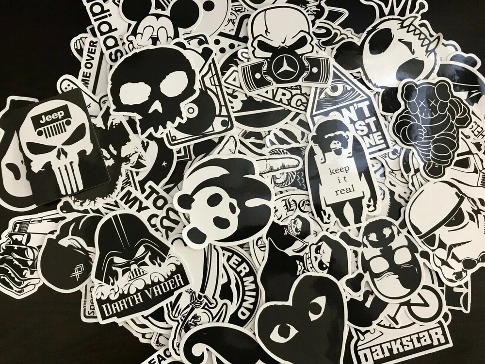 Lot of 200 Stickers Black white Laptop Skateboard Luggage Decals Sticker