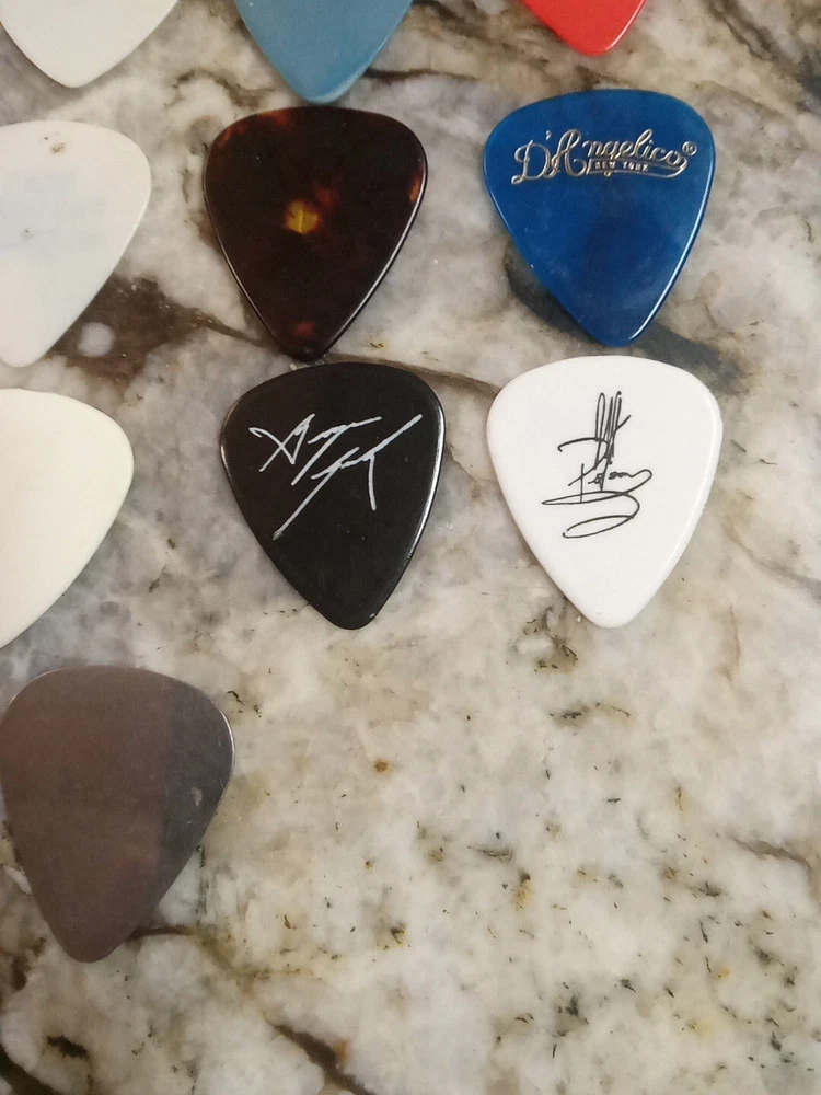 This lot of 22 vintage guitar picks includes a variety of colors and materials, making them suitable for a range of guitar types such as acoustic, lap & pedal steel, acoustic electric, bass, and electric. Whether you're a collector or a musician, these picks are a great addition to your collection. The lot features picks with unique designs, including the Brian Seltzer Orchestra Meatloaf Metal Rules pick.