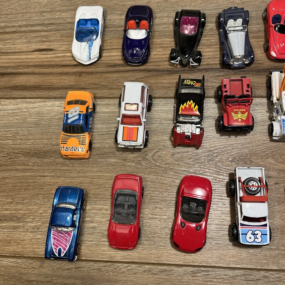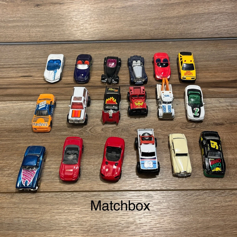They are in used condition. Have definitely been played with and are a little bit beat up. The lot of mostly made up of matchbox cars, but there are a few hot wheels and few other unbranded ones mixed in. I think the cars are mostly from the late 80s early 90s but there are a few from the 70s mixed in. Please see pictures for specifics. Let me know if you have any other questions or want more pictures and I'd be happy to help. Thanks for checking out my item!
