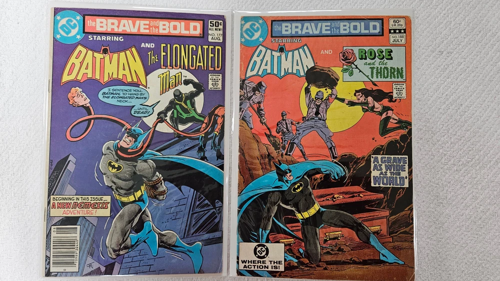 BATMAN COMICS – Total = 28 Comics - $125.50 Overstreet Note: All comics come in new plastic sleeves with backboards. Batman – Total = 1 1) Batman (DC) - #0 - VF 8.0 to NM- 9.2 - $5 Overstreet Batman Adventures, The – Total = 1 1) Batman Adventures, The (DC) - #25 - VF 8.0 to NM- 9.2 - $16 Overstreet Batman and the Outsiders – Total = 1 1) Batman and the Outsiders (DC) - #9 - GD 2.0 - $1 Overstreet Batman: Legends of the Dark Knight – Total = 17 Comics - $66 Overstreet 1) Batman: Legends of the Dark Knight (DC) #2 - VF 8.0 to NM- 9.2 - $4 Overstreet 2) Batman: Legends of the Dark Knight (DC) #3 - VF 8.0 to NM- 9.2 - $4 Overstreet 3) Batman: Legends of the Dark Knight (DC) #4 - VF 8.0 to NM- 9.2 - $4 Overstreet 4) Batman: Legends of the Dark Knight (DC) #5 - VF 8.0 to NM- 9.2 - $4 Overstreet 5) Batman: Legends of the Dark Knight (DC) #6 - VF 8.0 to NM- 9.2 - $4 Overstreet 6) Batman: Legends of the Dark Knight (DC) #7 - VF 8.0 to NM- 9.2 - $4 Overstreet 7) Batman: Legends of the Dark Knight (DC) #8 - VF 8.0 to NM- 9.2 - $4 Overstreet 8) Batman: Legends of the Dark Knight (DC) #9 - VF 8.0 to NM- 9.2 - $4 Overstreet 9) Batman: Legends of the Dark Knight (DC) #10 - VF 8.0 to NM- 9.2 - $4 Overstreet 10) Batman: Legends of the Dark Knight (DC) - #11 - VF 8.0 to NM- 9.2- $4 Overstreet 11) Batman: Legends of the Dark Knight (DC) - #12 - VF 8.0 to NM- 9.2 - $4 Overstreet 12) Batman: Legends of the Dark Knight (DC) - #14 - VF 8.0 to NM- 9.2 - $4 Overstreet 13) Batman: Legends of the Dark Knight (DC) - #15 - VF 8.0 to NM- 9.2 - $4 Overstreet 14) Batman: Legends of the Dark Knight (DC) - #19 - VF 8.0 to NM- 9.2 - $5 Overstreet 15) Batman: Legends of the Dark Knight (DC) - #21 - VF 8.0 to NM- 9.2 - $3 Overstreet 16) Batman: Legends of the Dark Knight (DC) - #24 - VF 8.0 to NM- 9.2 - $3 Overstreet 17) Batman: Legends of the Dark Knight (DC) - #26 - VF 8.0 to NM- 9.2 - $3 Overstreet Brave and the Bold, The – Total = 2 Comics - $4 Overstreet 1) Brave and the Bold, The (DC) - #177 - FN 6.0 - $3 Overstreet 2) Brave and the Bold, The (DC) - #188 - GD 2.0 - $1 Overstreet Detective Comics – Total = 3 Comics - $22 Overstreet 1) Detective Comics (DC) - #615 - VF 8.0 to NM- 9.2 - $8 Overstreet 2) Detective Comics (DC) - #620 - VF 8.0 NM- 9.2 – $8 Overstreet 3) Detective Comics (DC) - #673 - VF 8.0 to NM- 9.2 - $6 Overstreet Justice League of America – Total = 1 1) Justice League of America (DC) - #253 - VF 8.0 to NM- 9.2 - $6 Overstreet Robin (Limited Series) – Total = 1 1) Robin (Limited Series) (DC) - #1 - GD 2.0 (Poster not included & slight water damage on back cover) - $2 Overstreet Robin – Total = 1 1) Robin (DC) - #11 - VF 8.0 to NM- 9.2 - $3.50 Overstreet Note: I combine shipping on all items ~