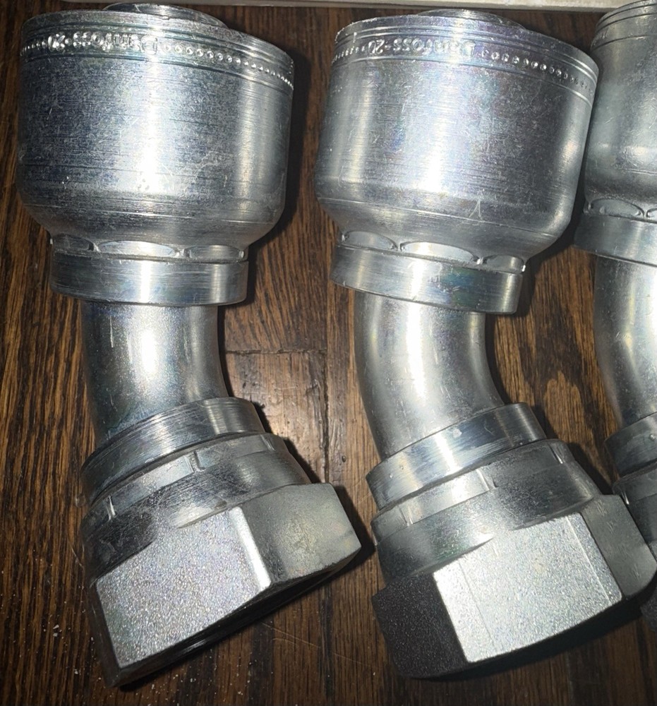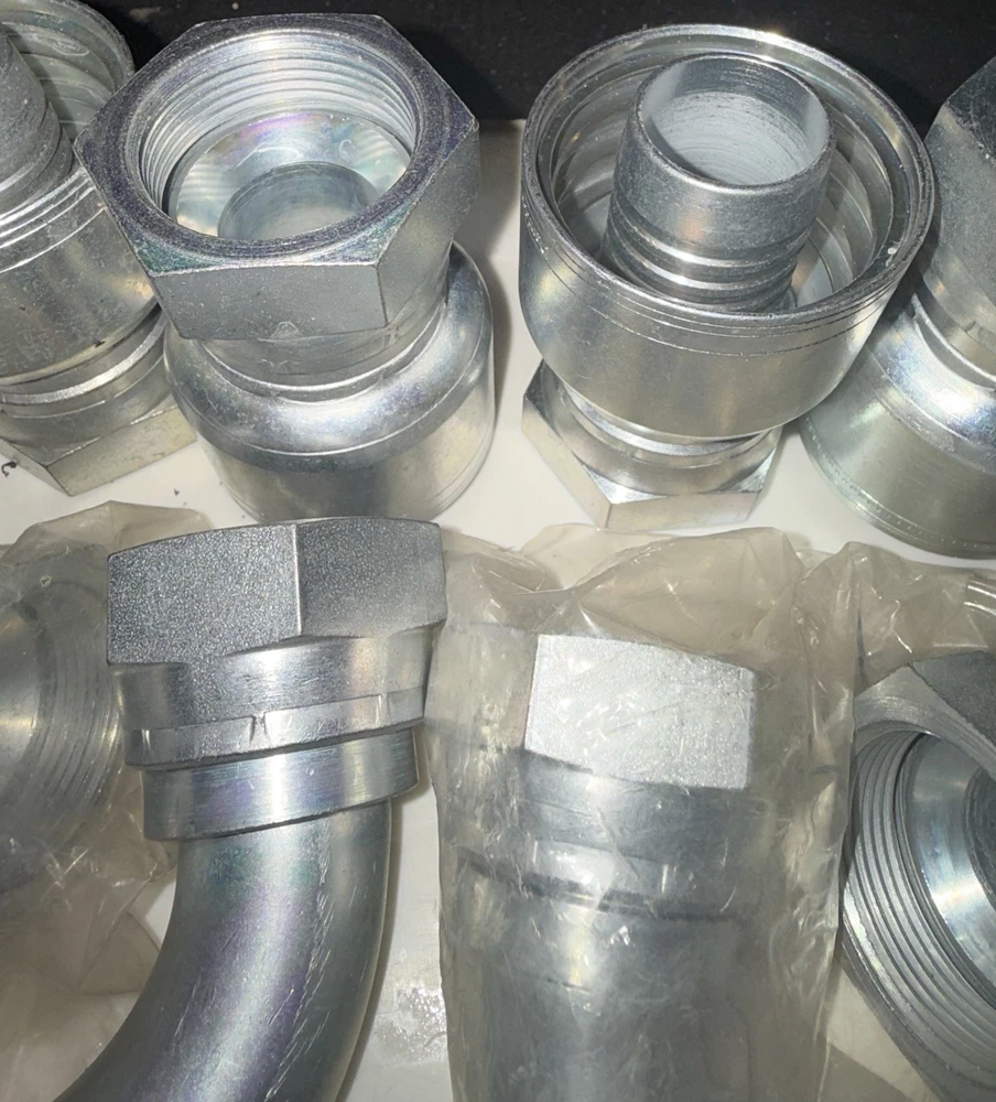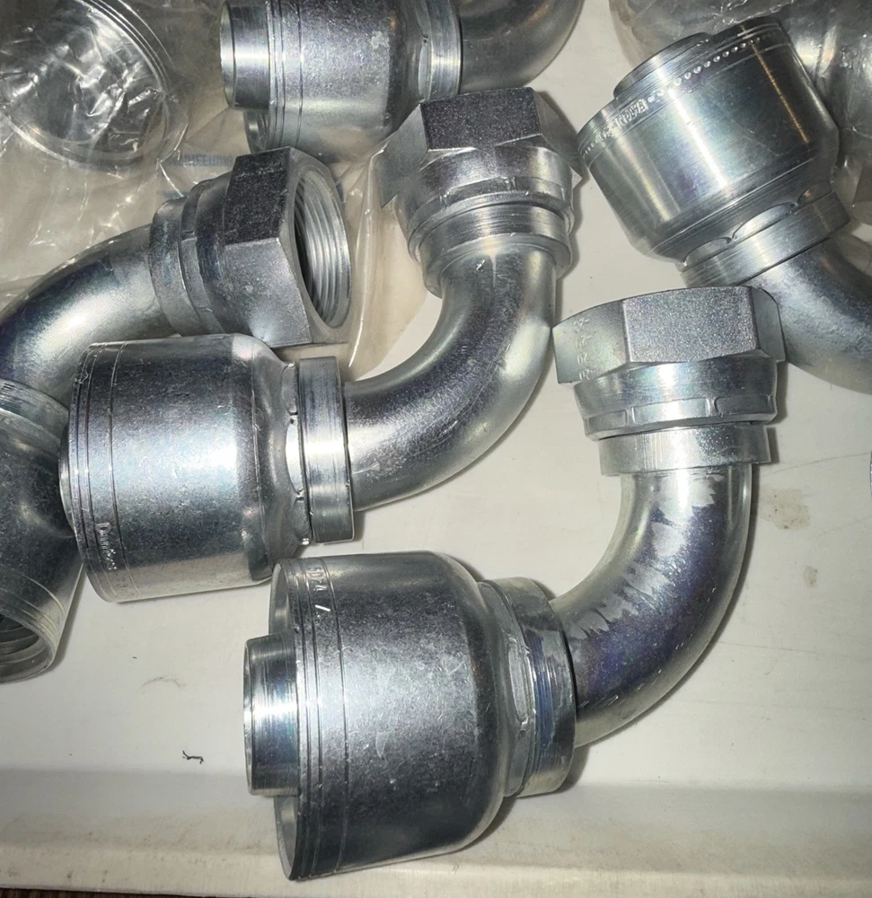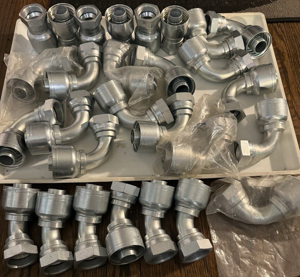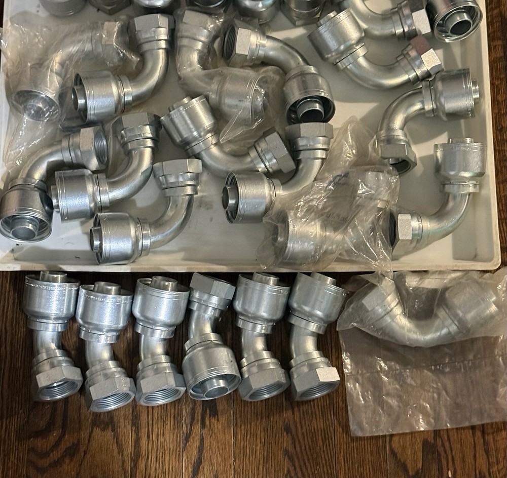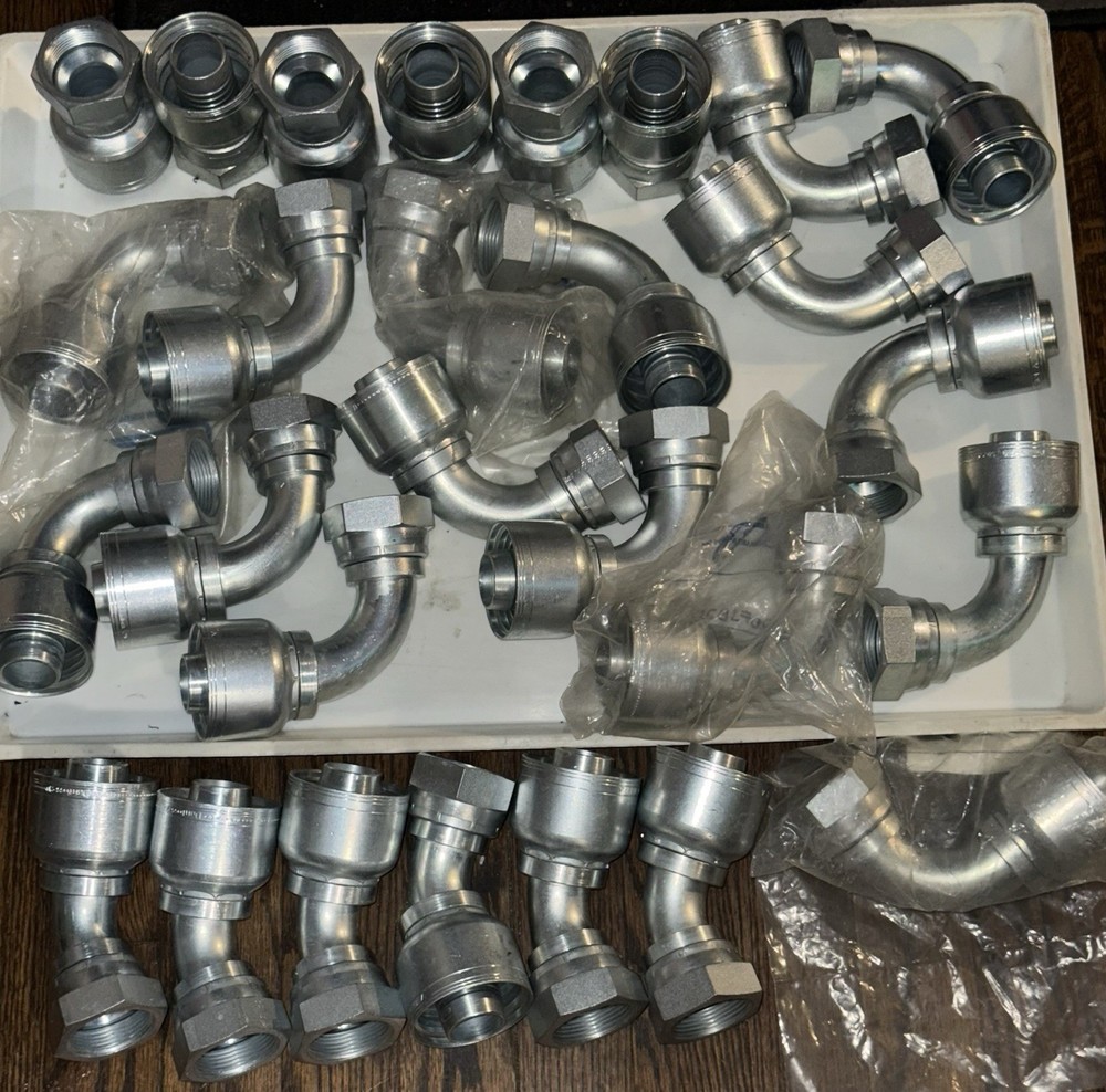 28 Danfoss Aeroquip Crimp Fittings , all are -20 fittings 6 straight 6 (45 degree) 16 (90 degree) all are new
