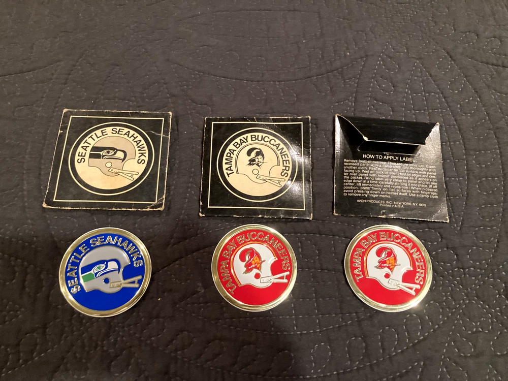 Estate Find 3 RARE Avon Decals for Tampa Bay Buccaneers / Seattle Seahawks Issues - None *** A Note On Shipping - all items are already in boxes and measured/weighed. I live in Northeastern Indiana and anything that crosses the Mississippi or goes Deep South tends to see shipping cost jump. Happy to send my zip and box size with weight for you to check yourself to see it is accurate as what eBay has calculated.