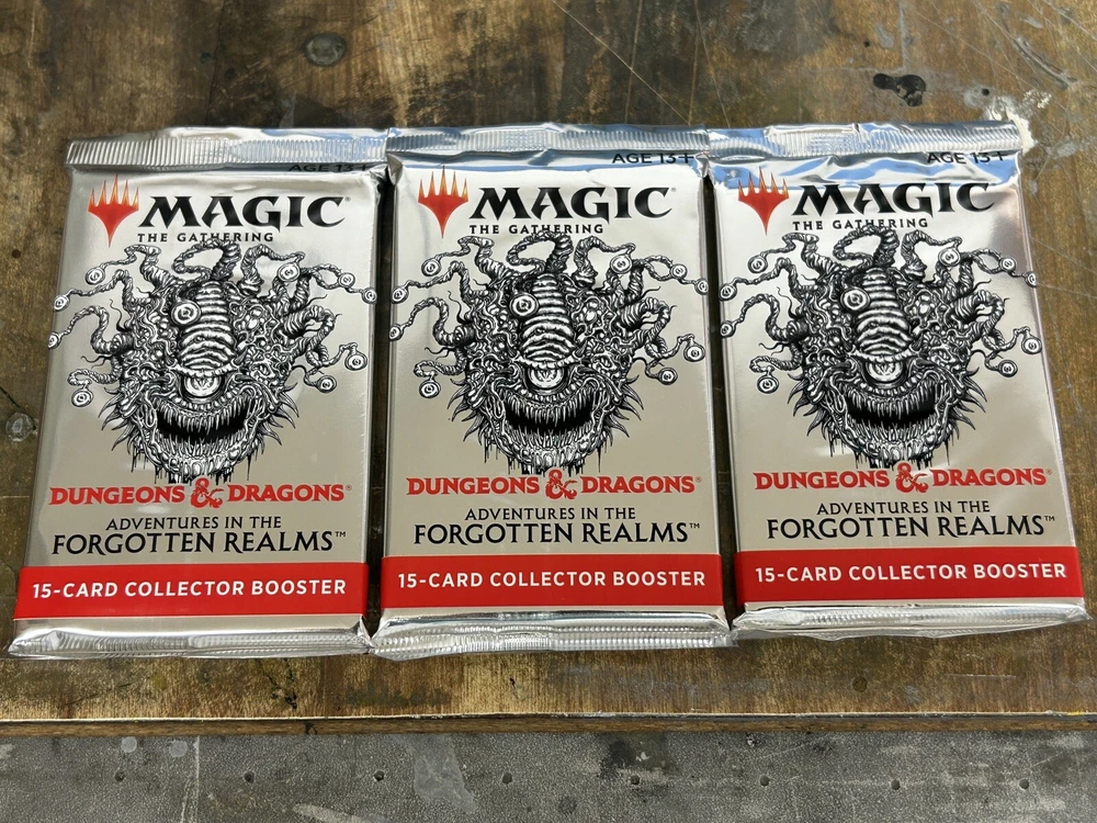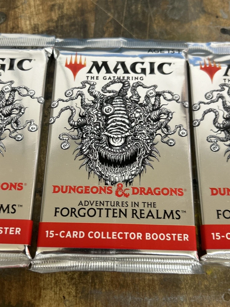 This is for (Lot of 3) New/Sealed Magic The Gathering Adventures in the Forgotten Realms Collector Booster Packs Slowly attempting to sell some of the packs I get from events at my local LGS and random other events. These are factory sealed packs, never been opened, weighed, searched or anything. Please see photos, but also don't hesitate to ask any questions about these or for more photos if you are unsure. I'm a player just like you so let me know if there's any way I can make you feel more comfortable buy individual packs on the internet from a stranger! Thanks for reading!! Let me know if you need any basic lands! Can combine listings for shipping discounts!