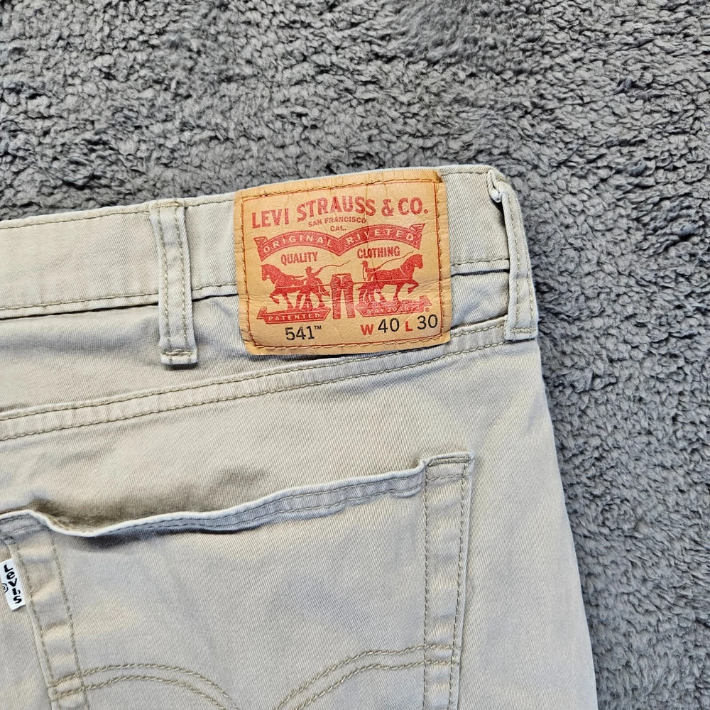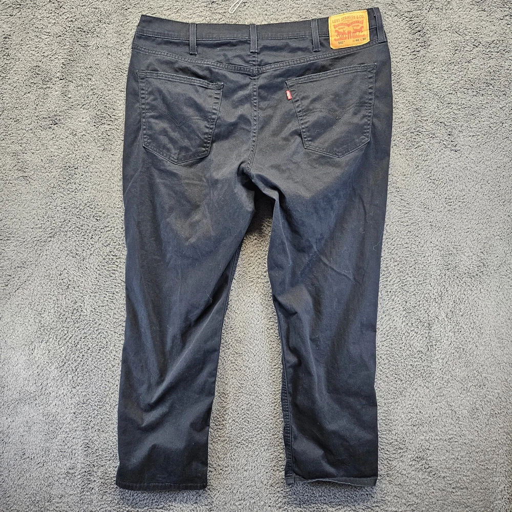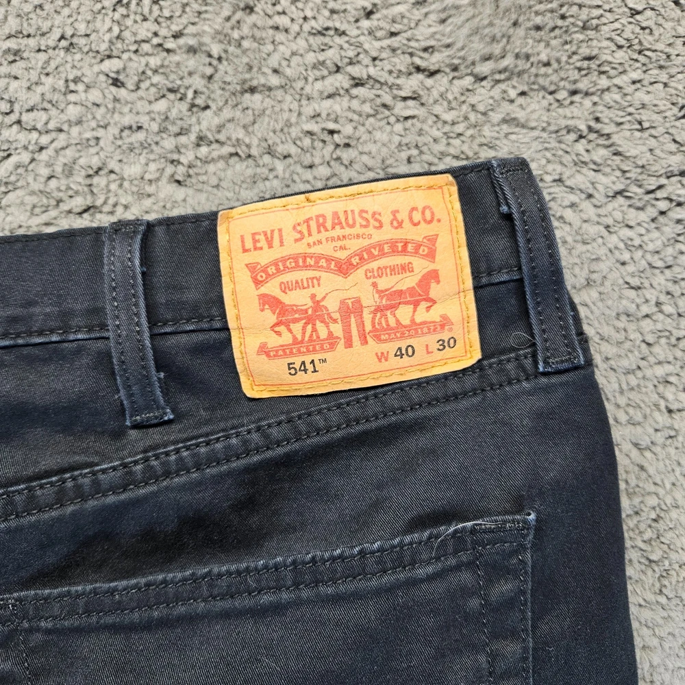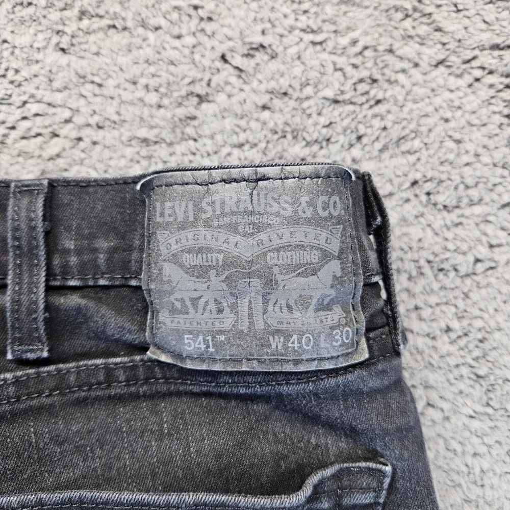 Style: Jeans Size: 40 Model: Levi's 541 Brand: Levi's Inseam: 30 in Product Line: Levi's 500 Series Closure: Zip Leg Style: Tapered Waist Size: 40 in Vintage: No Fit: Athletic Material: Cotton Fabric Type: Denim Type: Jeans Color: Black Department: Men Size Type: Regular