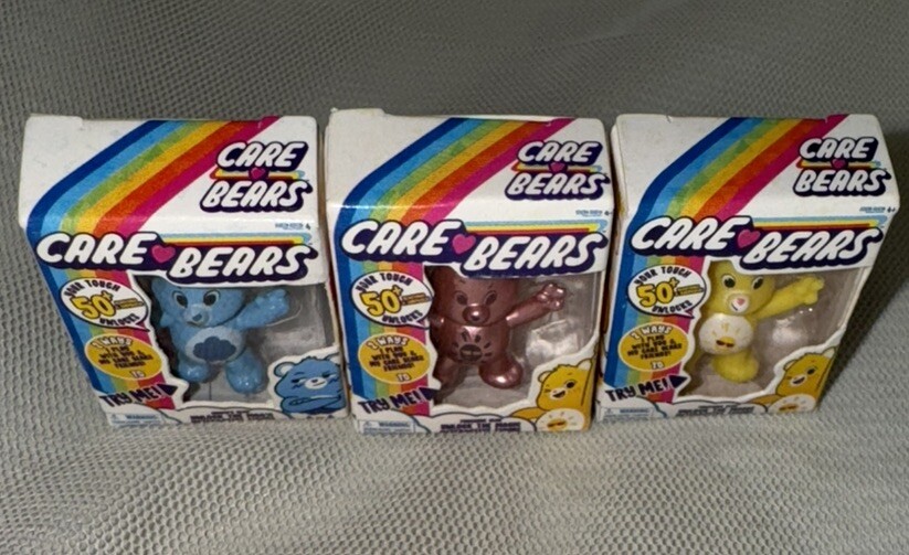 Dive into the whimsical world of Care Bears with this delightful lot of three miniature figures from Zuru Mini Brands. Each bear embodies a unique Care Bears character: the soothing Sunshine, the grumpy Resting Face, and the cheerful Funshine, all finished in an elegant rose gold color that adds a touch of luxury to your collection. Crafted with care, these tiny treasures capture the essence of the beloved franchise, Care Bears, and are perfect for collectors and fans alike. Made from high-quality gold material, they reflect the brand's commitment to detail and are a must-have for those who appreciate the nostalgic charm and modern miniature collectibles.