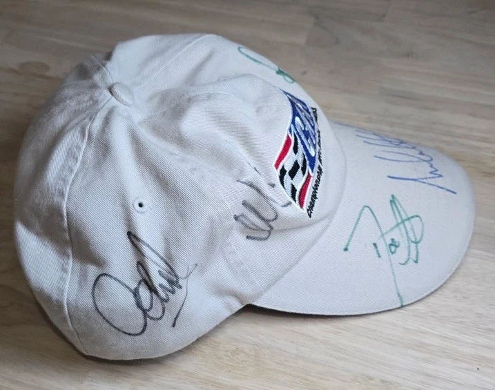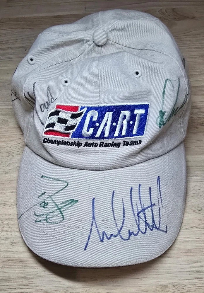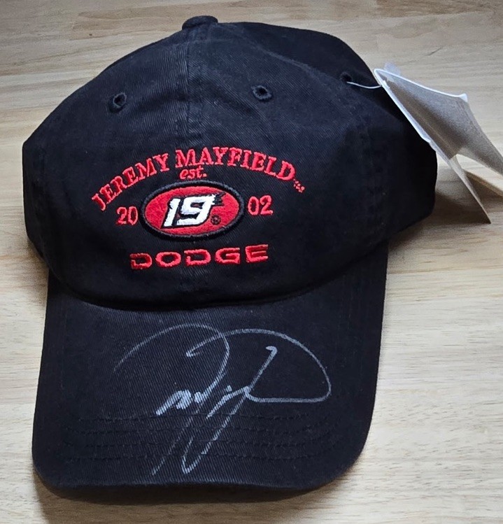 Unique collection of three vintage, hand-signed racing caps from the early 2000s. This lot is perfect for any dedicated motorsports fan or memorabilia collector. Jeremy Mayfield #19 Dodge Hat Carl Edwards Scotts Racing Hat CART Championship Auto Racing Teams - without tags