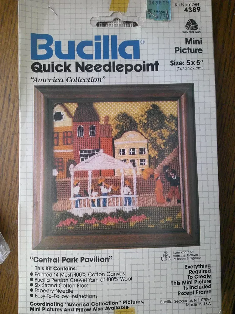 Lot of 3 Vintage Needlepoint Kits Bucilla CENTRAL PARK PAVILION * Sunset FAITH * Needlepointers SAFFRON all are new in packaging I will combine and reduce shipping costs whenever possible. Most items are second-hand and I cannot guarantee they have not ever been exposed to smoke or pets.