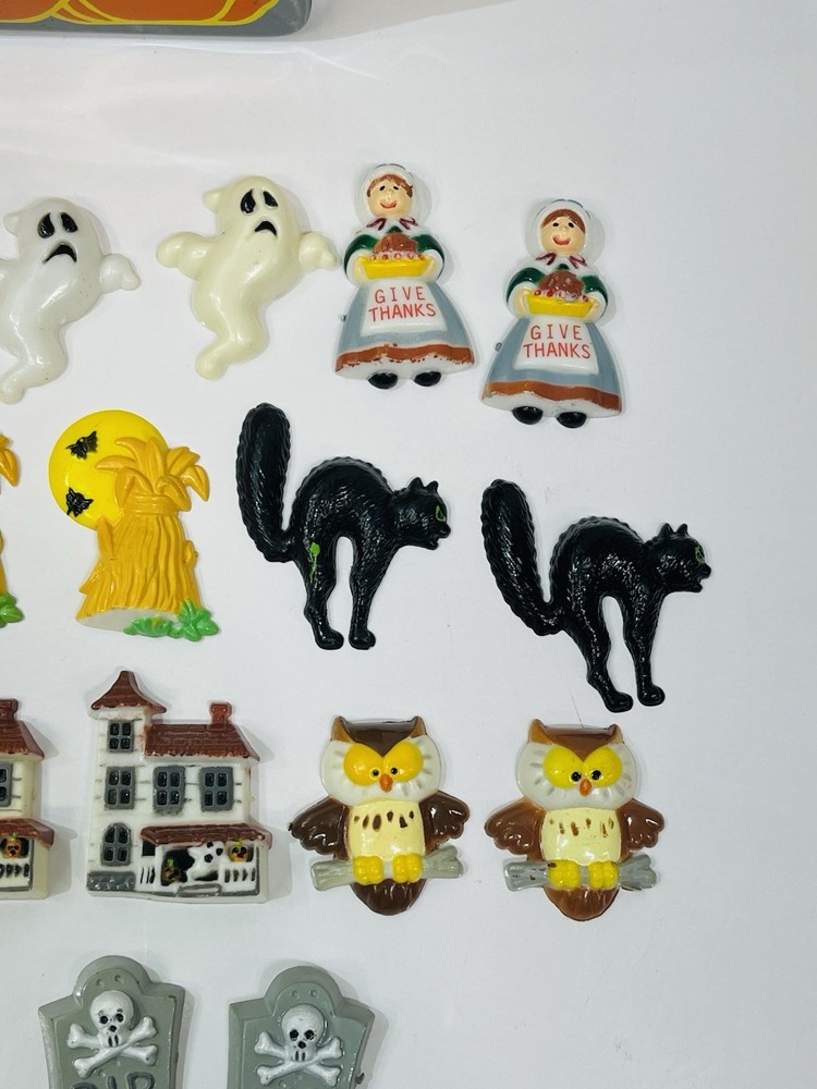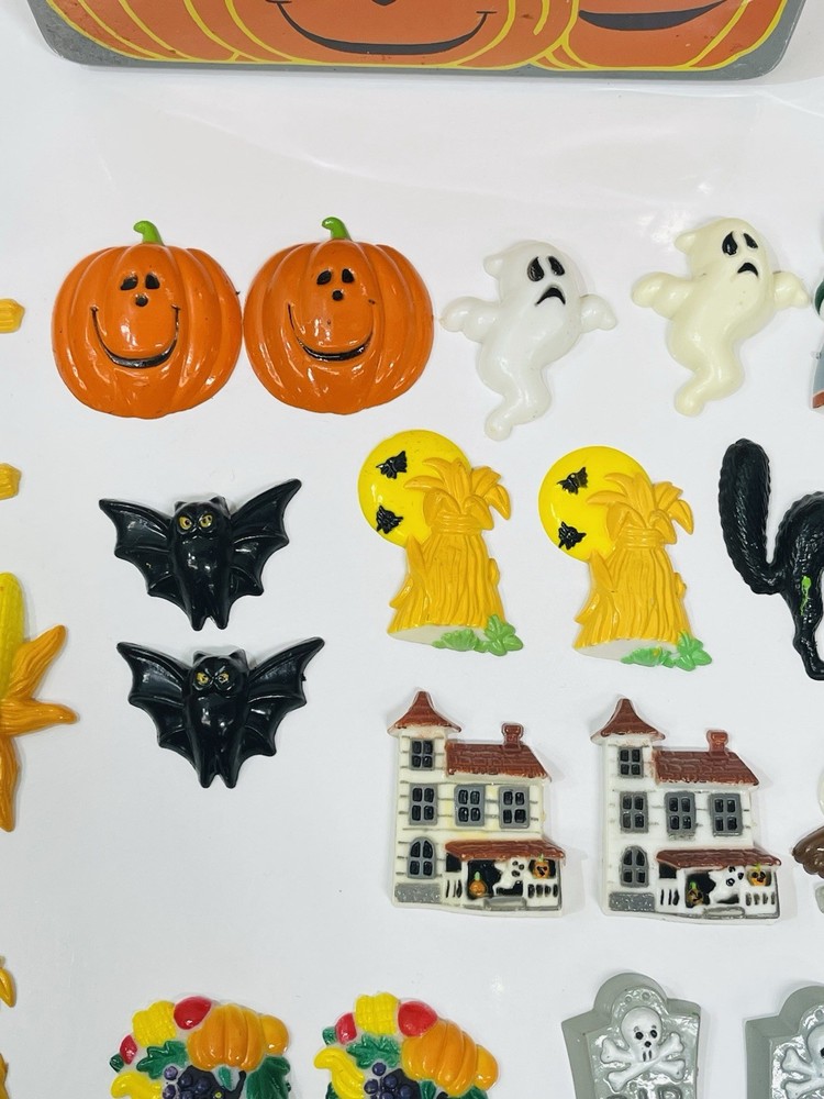 Lot of 32 Vintage JSNY 1980's Halloween mini plastic magnets and tin, all of the magnets are in good condition, so I’m sure some small signs of use, I did replace two of the magnets with rare earth magnets and will add a couple extras in case there needed in the future . The tin is in good condition but does have some dents in it . . Thank you for Visiting Northern Michigan's Ebay Store, We offer a wide variety of New and used items, Please view all photo's, as they are the best description of each item, we value our customers and do our best to offer items as described. If by chance we miss something please contact us, as customer satisfaction and service is our number one goal. Thank You for visiting and have a great day!