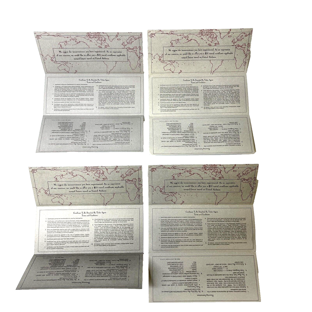 Lot of 4 United Express Travel Voucher $25 Coupons Collectables Non Redeemable Discount Amount: $25 Four unused United Express $25 discount travel certificates. These collectible certificates have no redeemable value and are solely for collectors. They were manufactured in the United States and are a must-have for aviation and transportation enthusiasts. Please note that these certificates cannot be used for any travel discounts. If you have any questions, comments or concerns please don't hesitate to reach out, we do our best to answer all questions that come to our inbox.