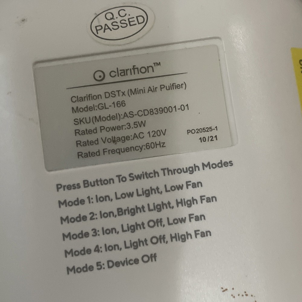 Lot of 5 Clarifion Portable Plug-In Ionizer & Air Purifier Hepa DSTx GL-166. Condition is Used. Shipped with FedEx Ground or FedEx Home Delivery.