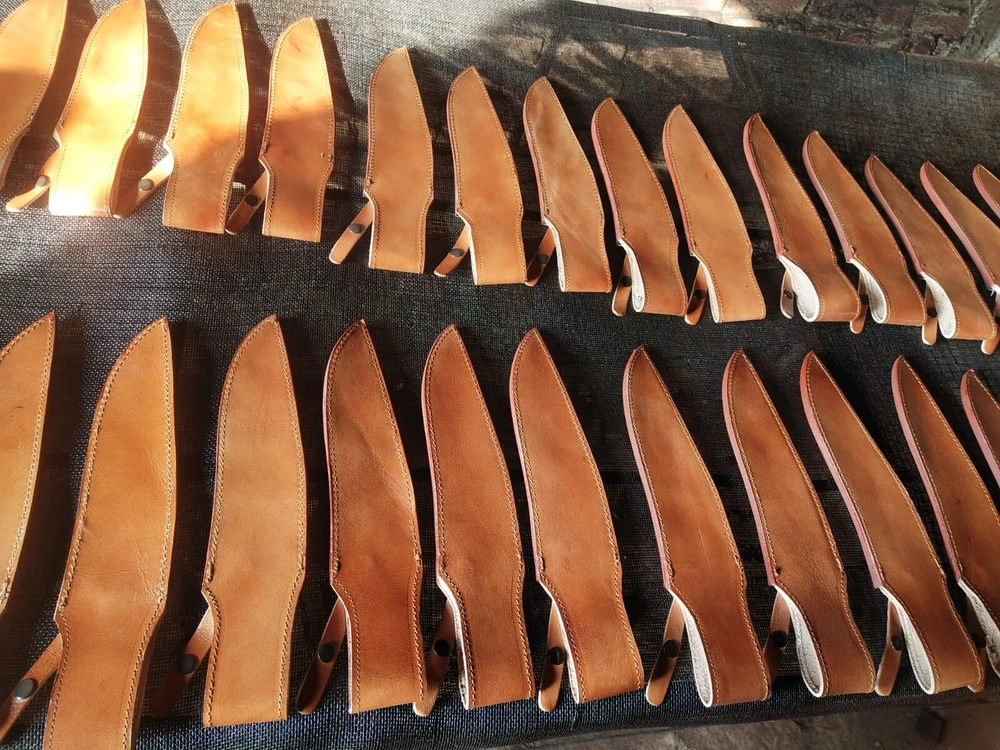 Lot of 100 Bowie leather sheaths." This could mean you're interested in purchasing or selling a bulk quantity of leather sheaths designed for Bowie knives. If you're looking for suppliers or manufacturers, there are several options to consider: Overall 15"inch Belt length: 5"inch Width 2.5"inch 1. Wholesale Suppliers: You can check platforms like eBay, or specialized knife accessory retailers that sell bulk leather sheaths. 2. Custom Leather Shops: Some shops may offer bulk orders for custom sheaths. They might be able to make 100 sheaths based on specific requirements for the Bowie knife design. 3. Online Marketplaces: Website like ebay might offer bulk purchasing from artisans who specialize in knife accessories. Are you looking for a specific type of sheath (such as a particular leather color, design, or quality)? Let me know how I can assist you further.