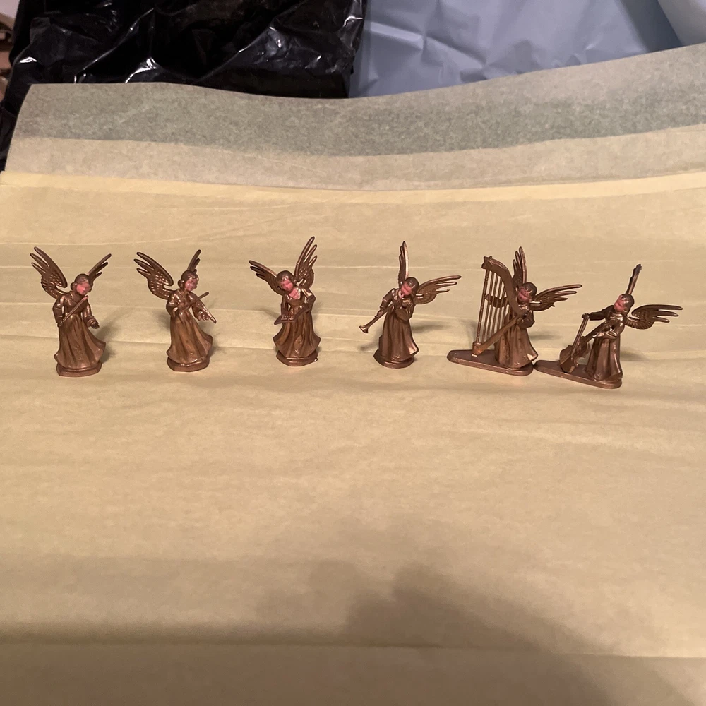 Lot of 6 Vintage 2 1/2" Plastic Angels Playing Instruments Gold Figurines. Condition is Used. Shipped with USPS Ground Advantage.