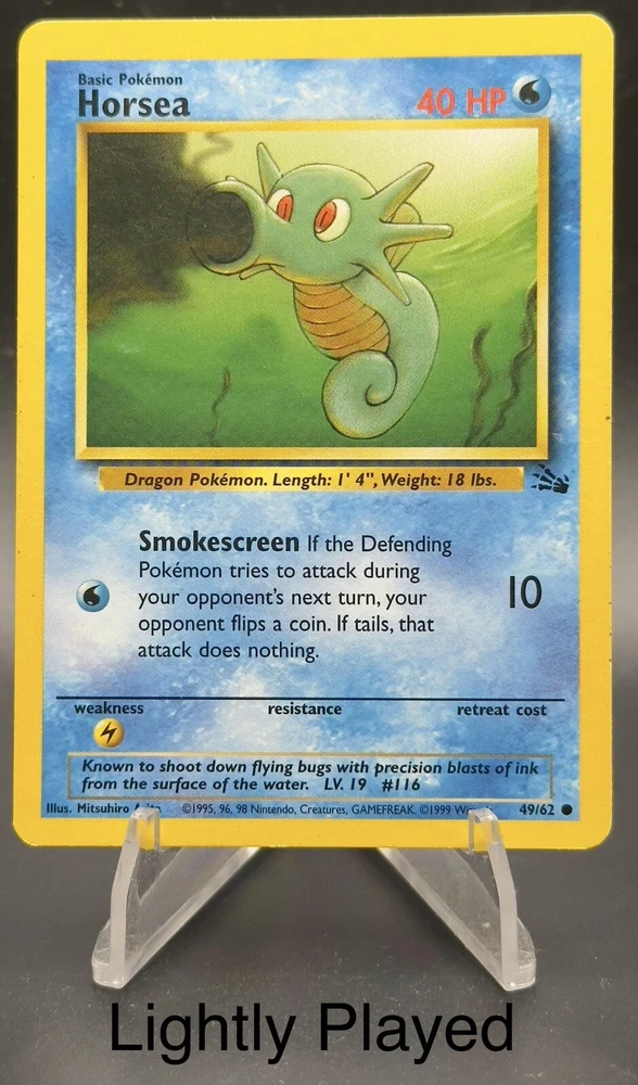 This is 7 vintage Pokémon cards from various sets. They are: Charmeleon Base Set 2 Vulpix Base Set Unlimited Magnemite Base Set Unlimited Golbat Fossil Horsea Fossil Psyduck Team Rocket Chikorita NeoGenesis Conditions are listed on each photo. Front and back are made available for you to see. The cards pictured are the cards you will receive. Shipping is free to you! Thank you!