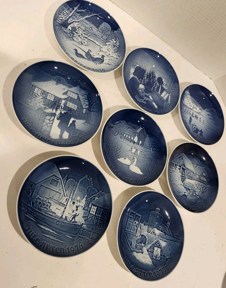 Lot of 8 Bing & Grondahl Jule Aften Annual Christmas Plates 1970 - 1977 Denmark