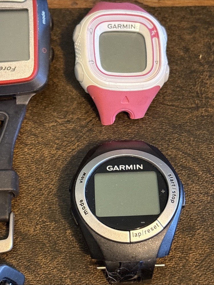 This is an amazing deal for anyone into fitness tracking! You get a variety of Garmin watches, including the unused Forerunner 305, plus other models like the 405cx, 205, 10, 50, and vivofit—all in great used condition. Perfect for runners or collectors who don't mind missing chargers. A steal for the price!