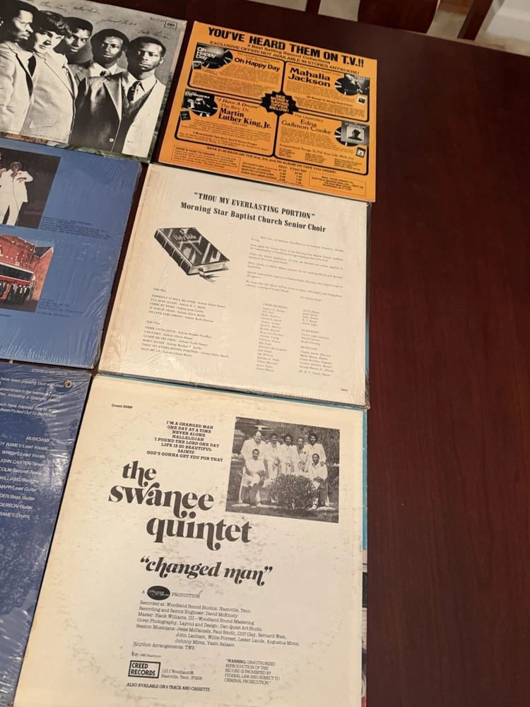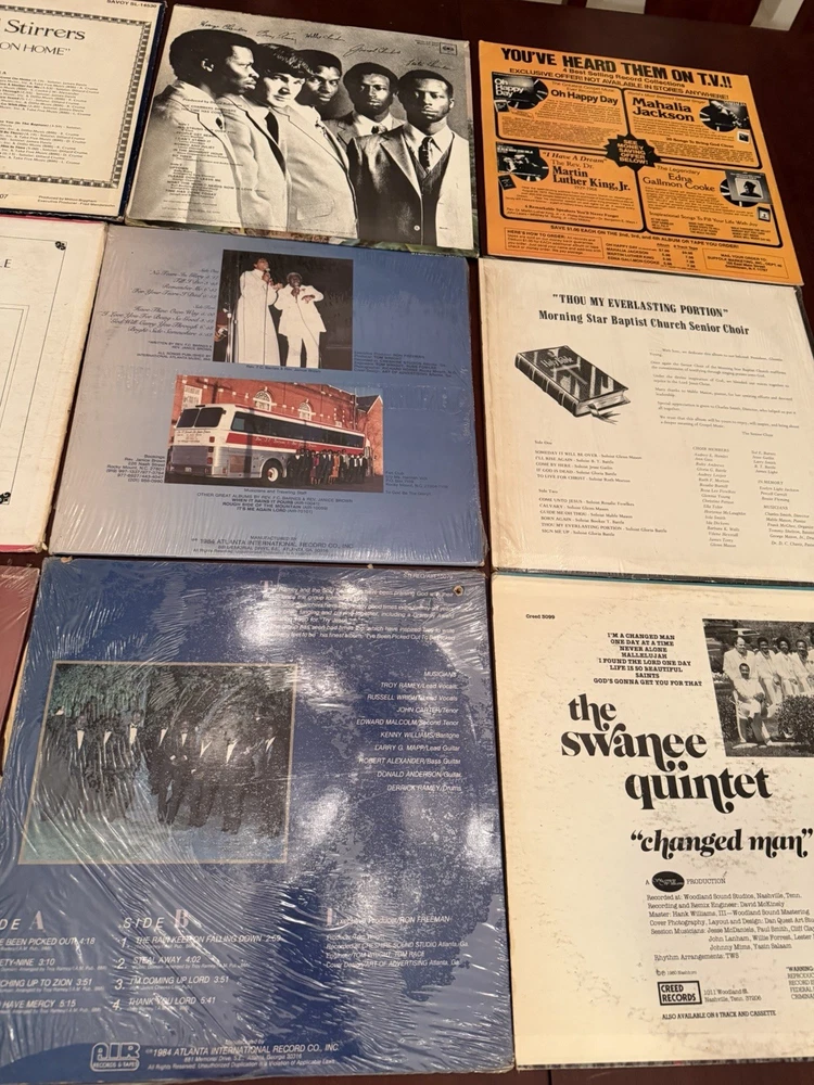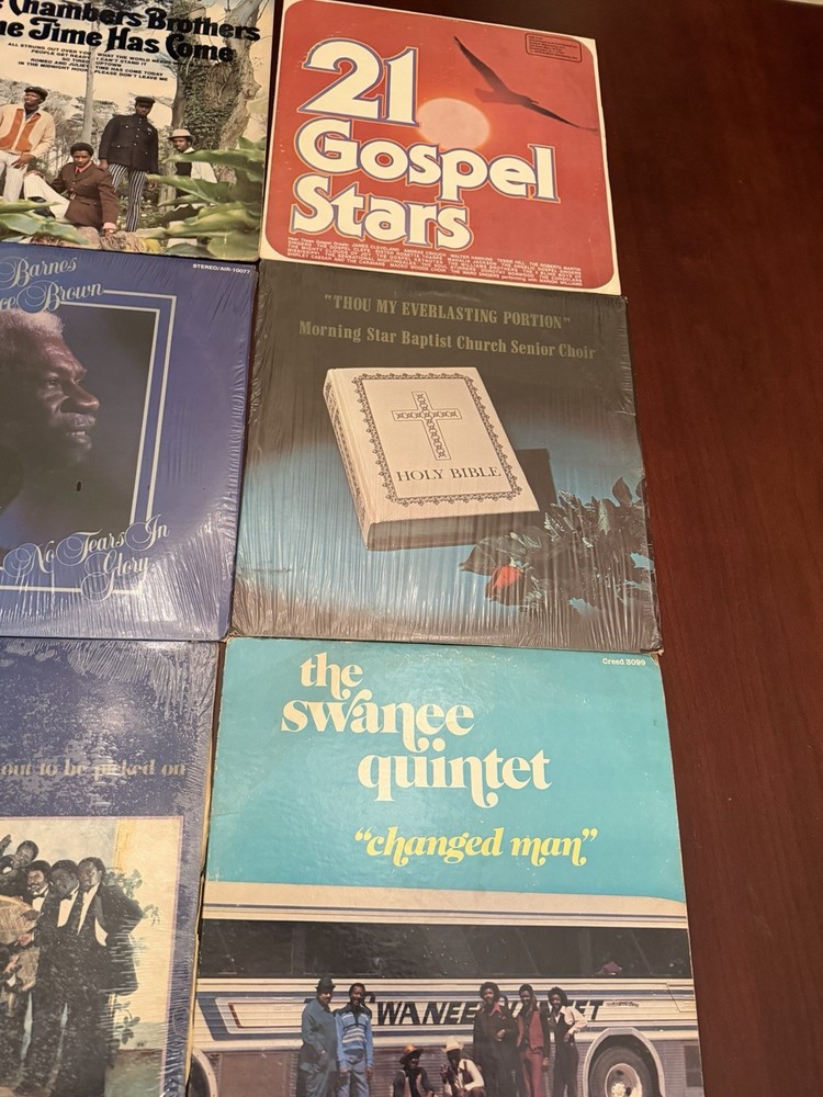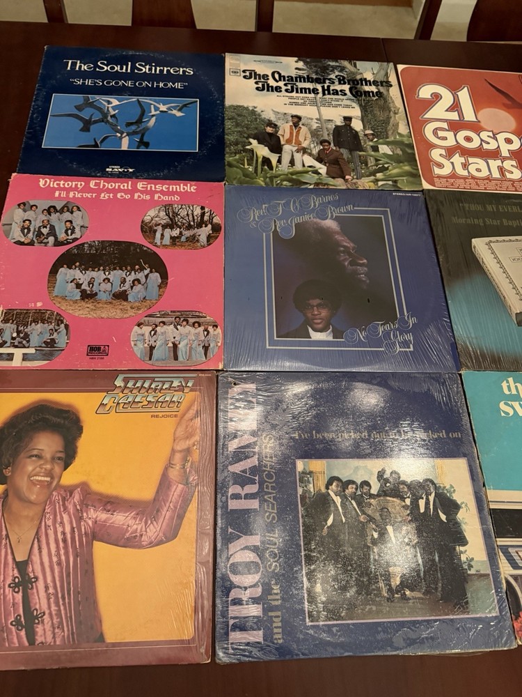 This lot of 9 vintage vinyl gospel records features artists such as The Swanee Quintet, Shirley Caesar, Troy Ramsey, Rev F.C. Barnes, The Soul Stirrers, The Chamber Brothers, and various others. The records play at a speed of 33 RPM on a 12" LP format, with English language and a Christian style. The black vinyl records come in cardboard sleeves and are in stereo for an immersive listening experience. Perfect for collectors of vintage gospel music, these records offer a nostalgic look into the world of Christian music from the past.