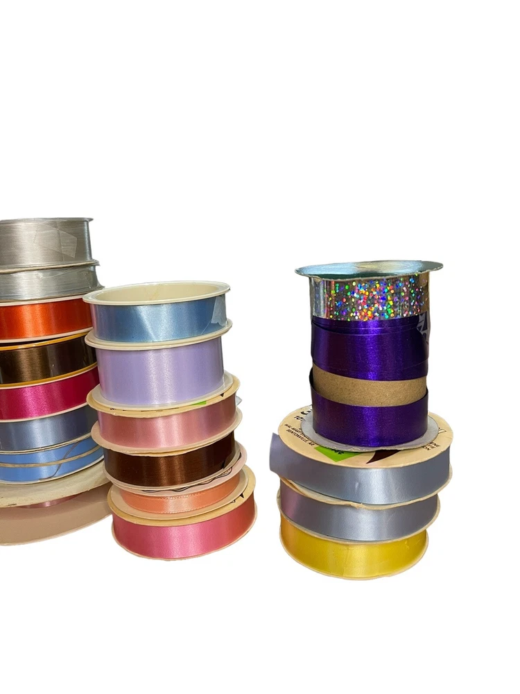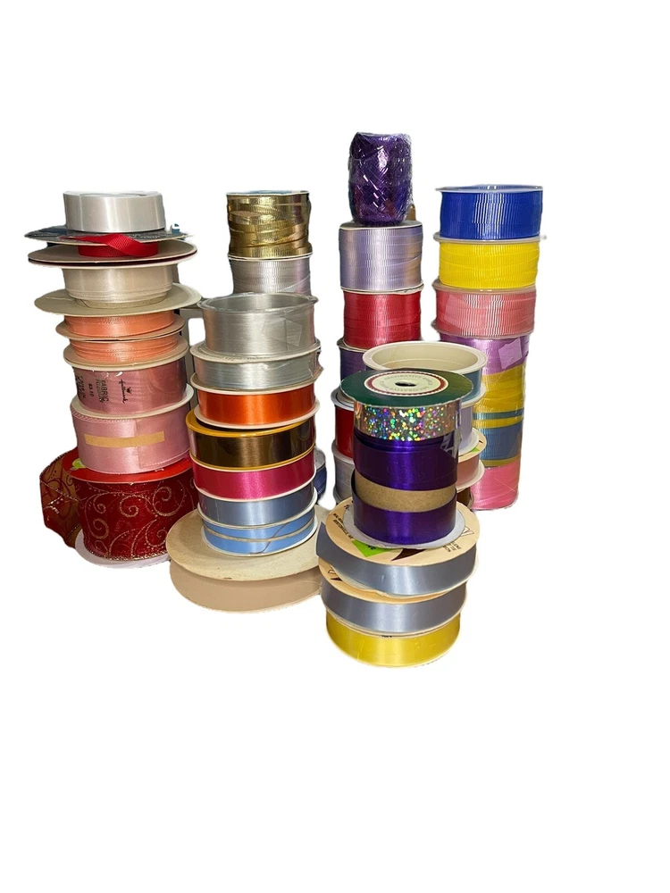 Some are brand new and never used and some have been opened and used. Some are fabric and some are plastic. This lot of 42 ribbon spools in various sizes and colors is perfect for all your crafting needs. Whether you're making bows for scrapbooking or using them for other crafting projects, this lot has something for everyone. The ribbons are made of high-quality materials and are sure to add a touch of elegance to any project. With a custom bundle of ribbons, this lot is a great choice for anyone looking to expand their crafting supplies. The variety of widths and ribbon types makes them perfect for creating unique and stylish designs. Don't miss out on this opportunity to add some special flair to your crafting projects.