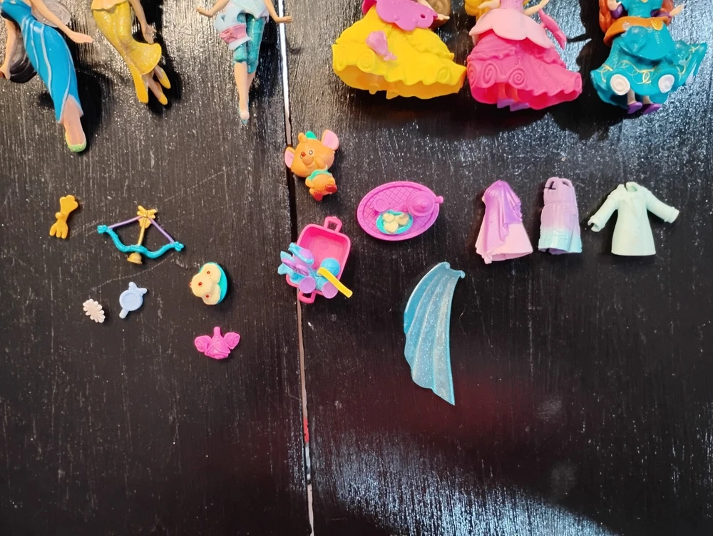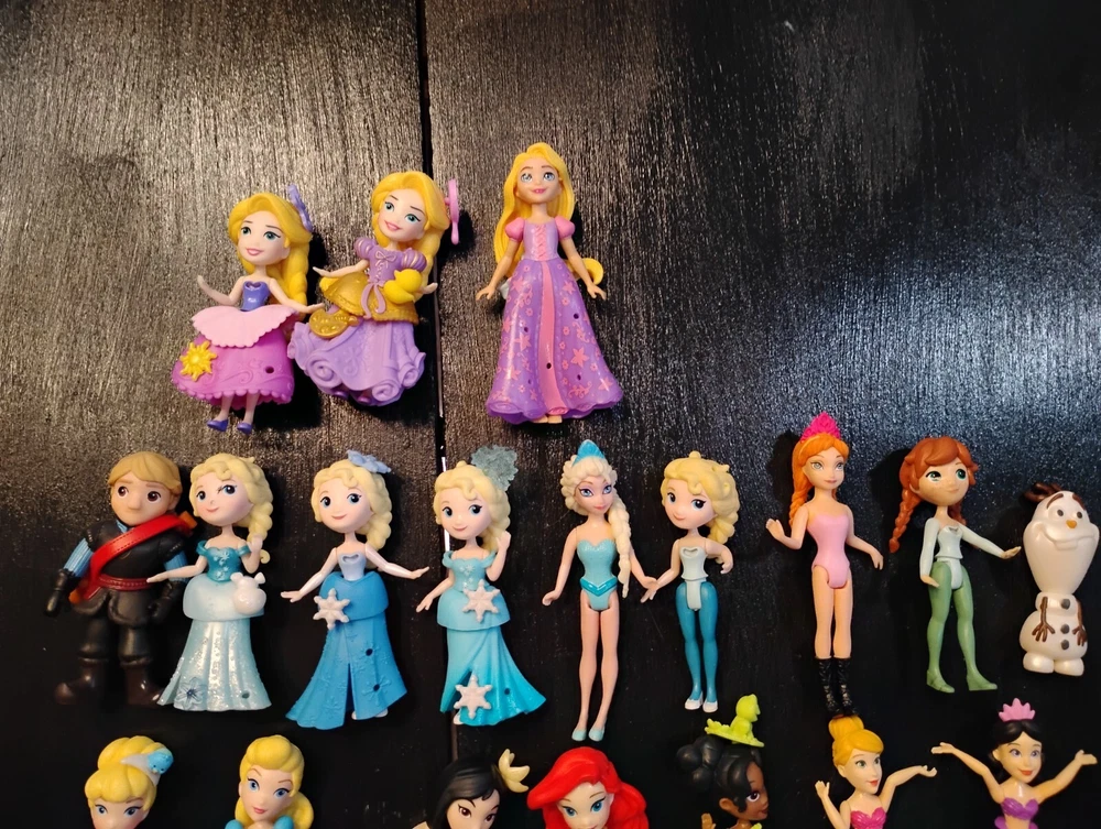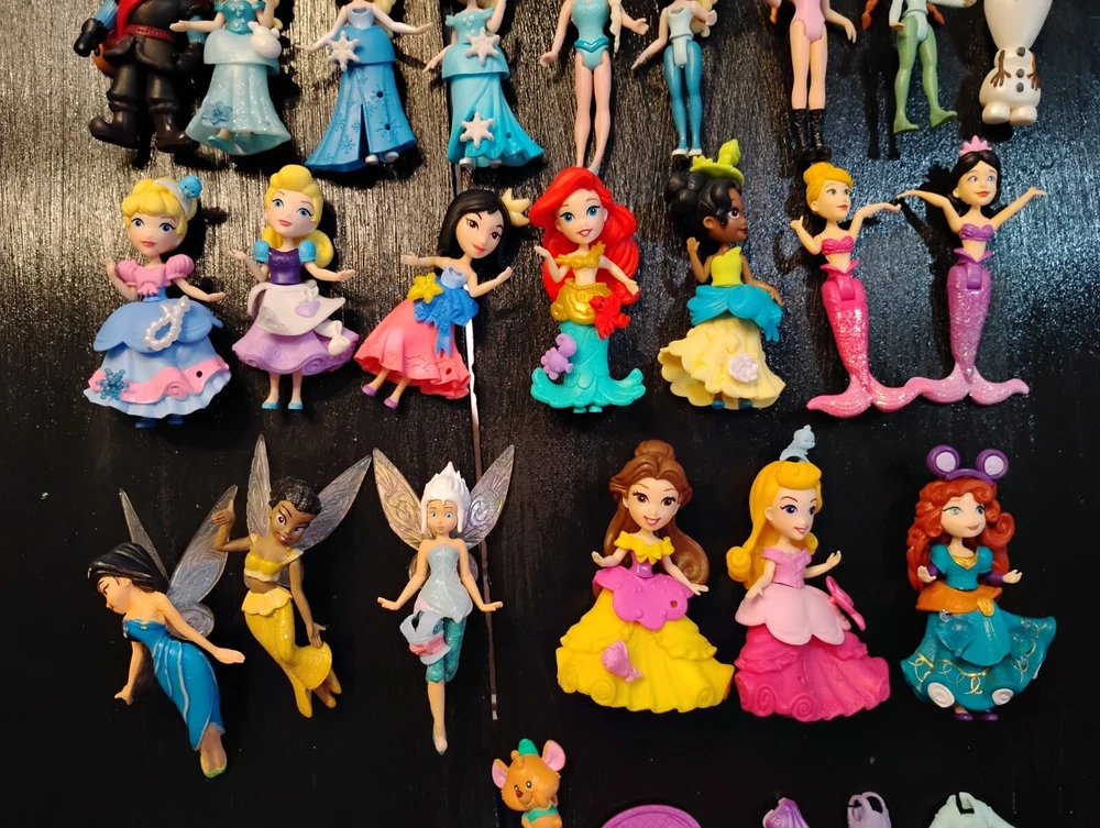 Enchanting Disney Princess Little Kingdom Adventure Awaits! Step into a world of magic and wonder with this delightful collection of 38 Disney Princess Little Kingdom figures! Imagine the possibilities with: 18 Princesses: Cinderella, Snow White, Belle, Ariel, Aurora, Rapunzel, Tiana, Merida, Mulan, Moana, Elsa, Anna, and more! 1 Sven: Ready for a snowy adventure with Anna and Elsa! 3 Fairies: Twinkling with magic and ready to lend a helping hand! 2 Mermaids: Diving into underwater fun with Ariel! 13 Magical Accessories: more to customize your royal looks! Let your little one's imagination soar as they create endless stories with these adorable mini figures. Don't miss this chance to bring the magic of Disney home! Condition: Gently used, in excellent condition.