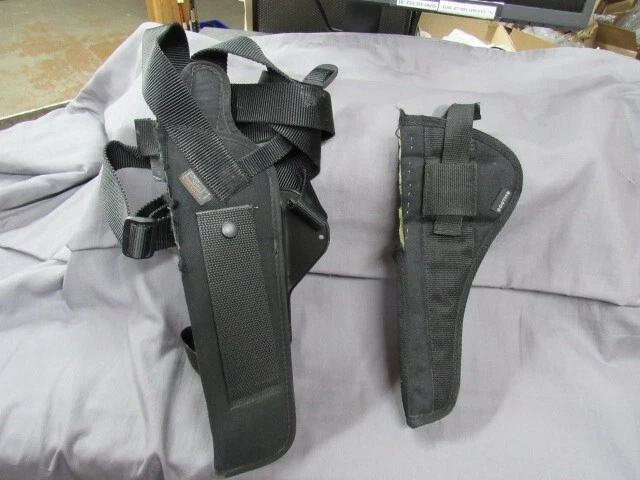 Lot of Two Holsters fit Large Frame Revolvers with 7.5" Barrels. One is an Uncle Mikes RH Sidekick Shoulder Holster size 4. One is a Bulldog RH Holster. Both fit Revolvers with 7.5" Barrels. Both have been altered to received a scoped Revolver, ( see pictures where they have been cut). Make sure to review the photos and thoroughly read the description and all shipping details before purchasing, as they provide important information about what you are getting and how you are getting it. Potential buyers who will be needing shipping to Alaska, Hawaii, or Puerto Rico need to ask for a shipping quote before ordering, as there will be an extra cost to ship to these areas. We do not ship internationally. Your satisfaction is guaranteed-bid with confidence Thank you for visiting with us! Bob's Gun and Tackle Shop Location : Tote X