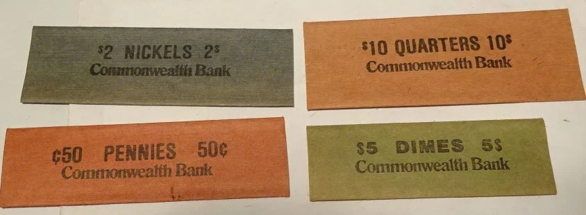 ** Lot of VINTAGE - PAPER COIN WRAPPERS - Advertising COMMONWEALTH BANK - UNUSED