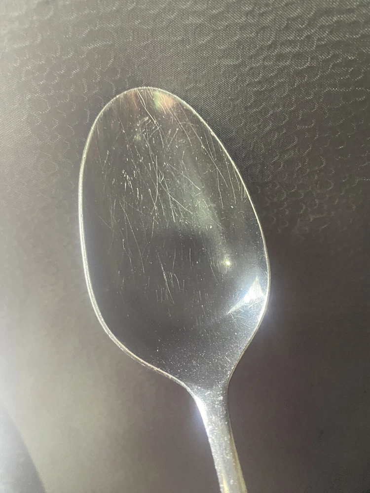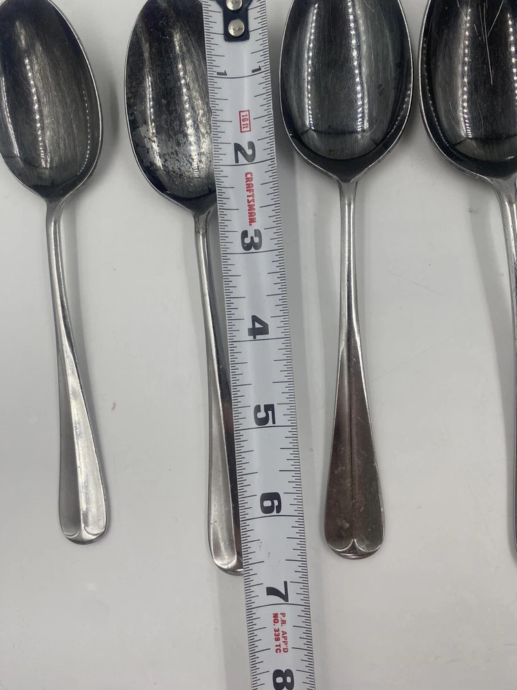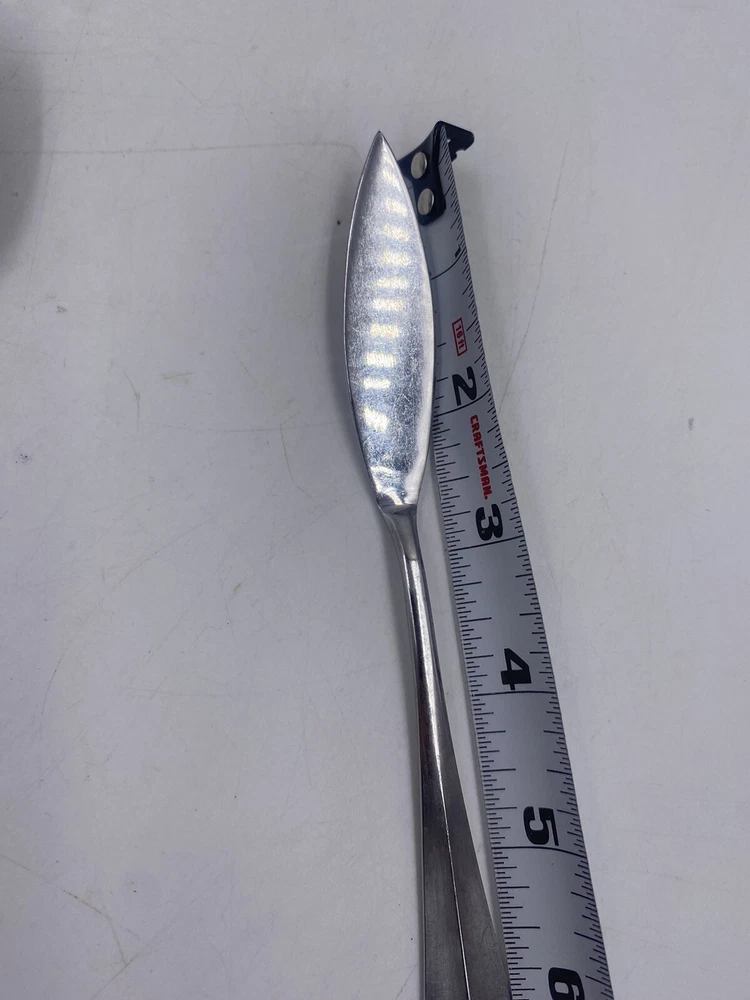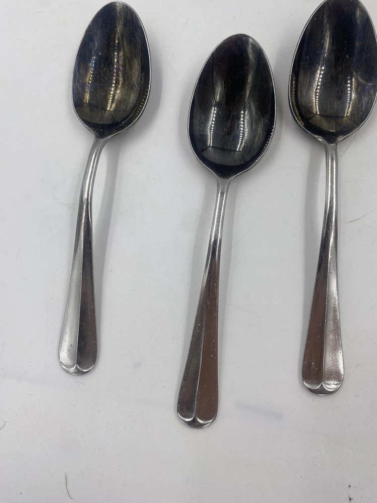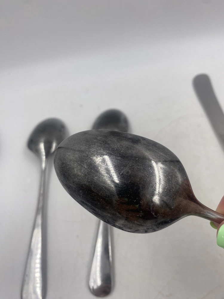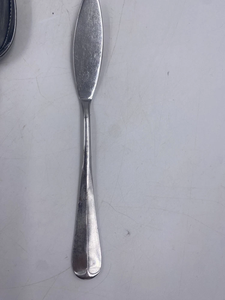This is a mixed lot of 22 total pieces of vintage Japan Northland stainless pieces. It includes 6 table knives, 8 tablespoons, 3 teaspoons, 1 Butter knife, 1 large serving fork and 3 large serving spoons. All of these pieces have scratches, scuffs, markings and or discoloration. The spoons have a black look to the insides as shown. All of these pieces need a good clean up to bring them back to original beauty. You get the actual items pictured so please look at all photos and ask any questions before purchase.