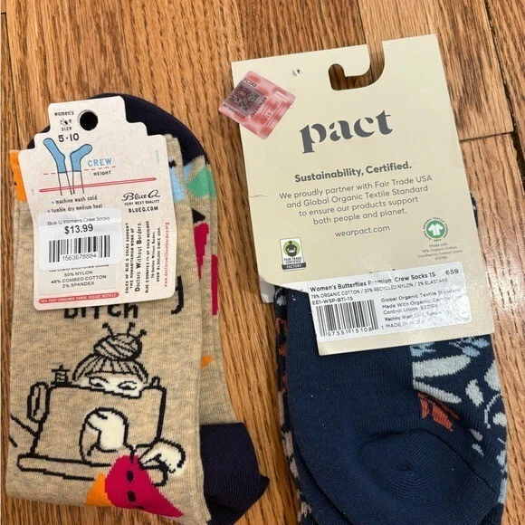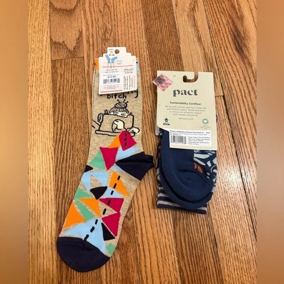Theme: Colorful, Holiday, Novelty Personalize: No Type: Socks Season: All Seasons, Fall, Winter Size: 6-10 Garment Care: Machine Washable Department: Women Color: Blue Orange Sock Length: Mid Calf Brand: Pact Material: Cotton Toe Style: Full Toe Handmade: No Style: Crew Socks