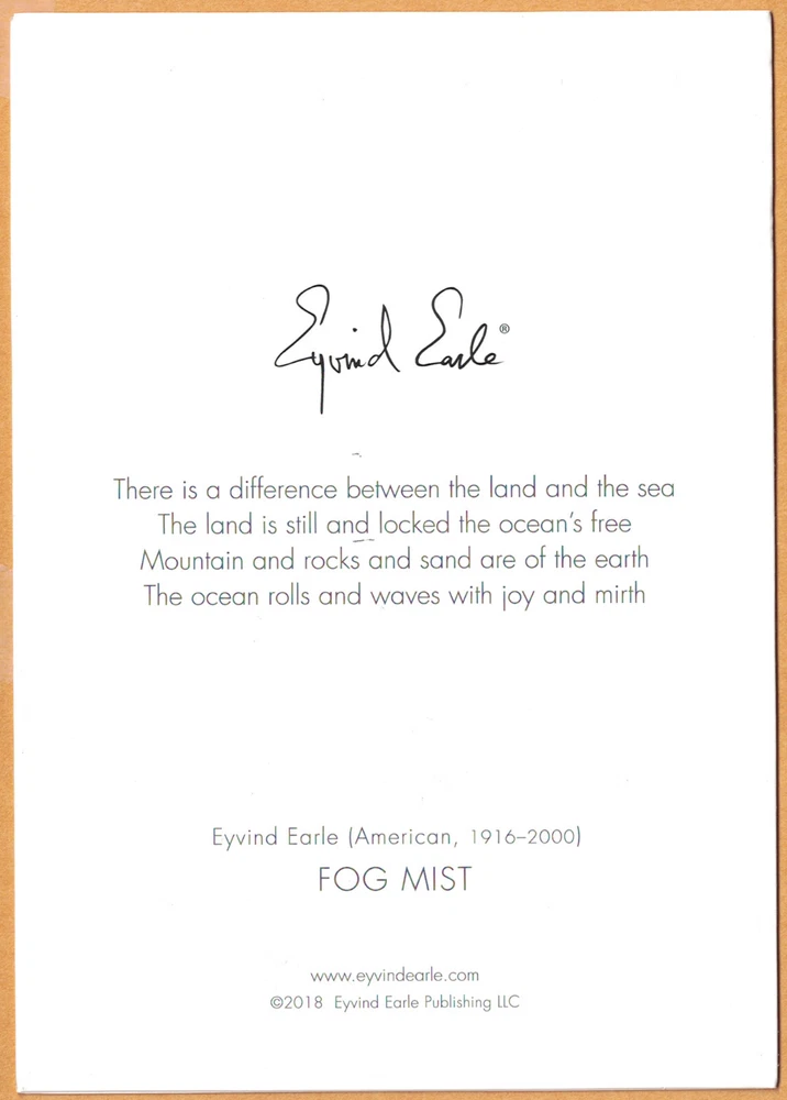 Up for grabs are two (2) beautiful images from artist Eyvind Earle titled "Fog Mist" and "Ocean Splash". The images are on blank note cards (light card stock) as shown in the additional images. Each card comes with a white envelope. Each card is approximately 4.5" x 6.5". A great opportunity to have an Eyvind Earle image framed at a very low cost This item qualifies for a Discounted Combined Shipping Rate I offer combined shipping discounts! If you want to purchase multiple items: 1. Please add each item to your shopping cart. 2. Once you have added all of you items, proceed to eBay Checkout. 3. eBay Checkout will automatically combined all of the items and calculate the shipping discount. 4. Make only one payment