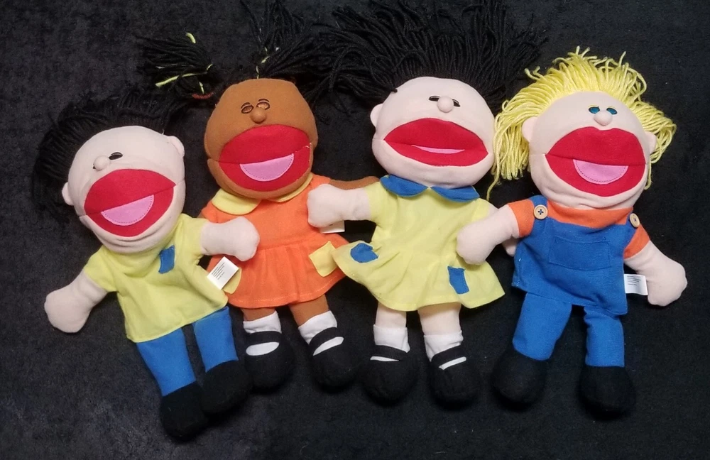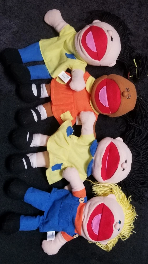 You are bidding on a Lot of 4 NWOT plush, multicultural toy Hand Puppets exactly as shown! Each adorable, 14" in. puppet is lighweight, & has a comoletely different outfit in bright, vivid colors, features sweet yarn hair, a fully operational open/closing mouth, & these are perfect for a daycare setting, at home play, or even just keeping at the grandparents home for kids to enjoy! Rec ages 2+ Machine washable. Fantastic set of toys from Oriental Toy Co. These are all in new condition (without tags), & would make a great holiday gift for either a boy, a girl, or both! Hand Puppets are such a fun way for your kids or grandkids to unleash their creativity, imagination, & educational learning through active / interactive playtime! Happy bidding! - Happy Puppet Shows! & thanks so much for stopping by to check out all of our auctions! :)