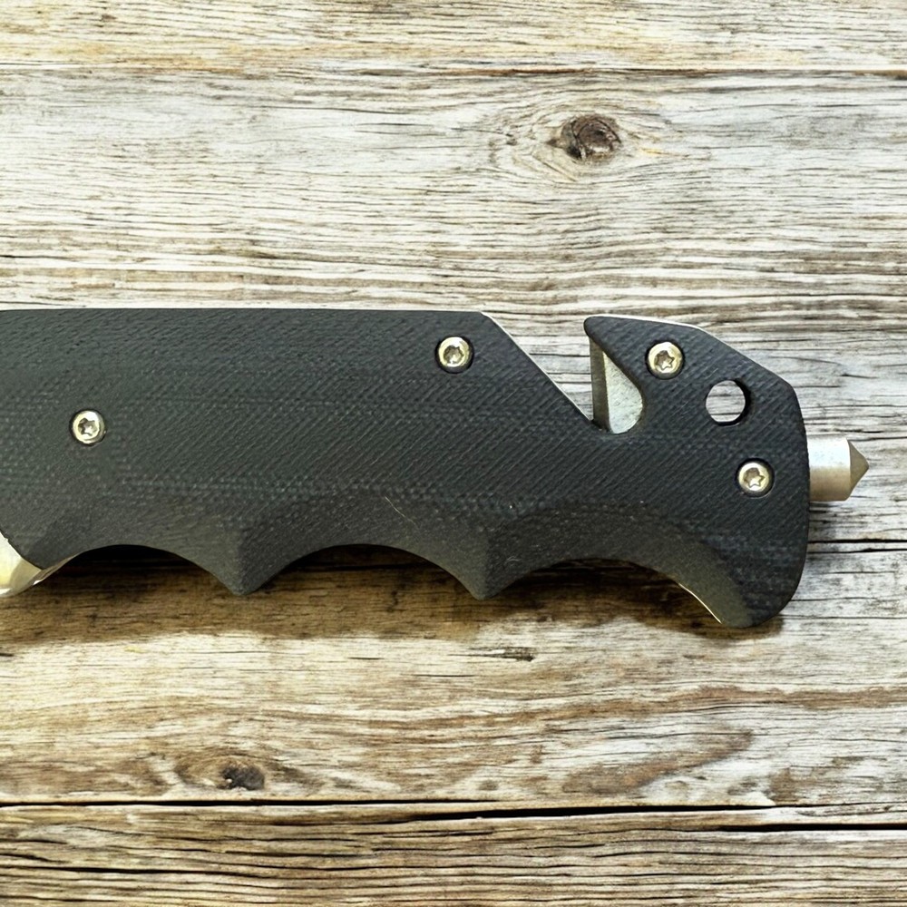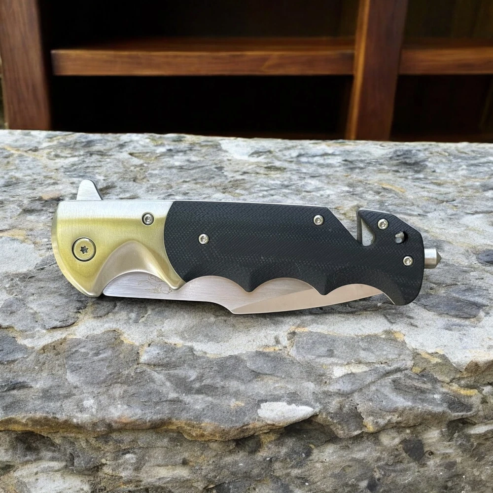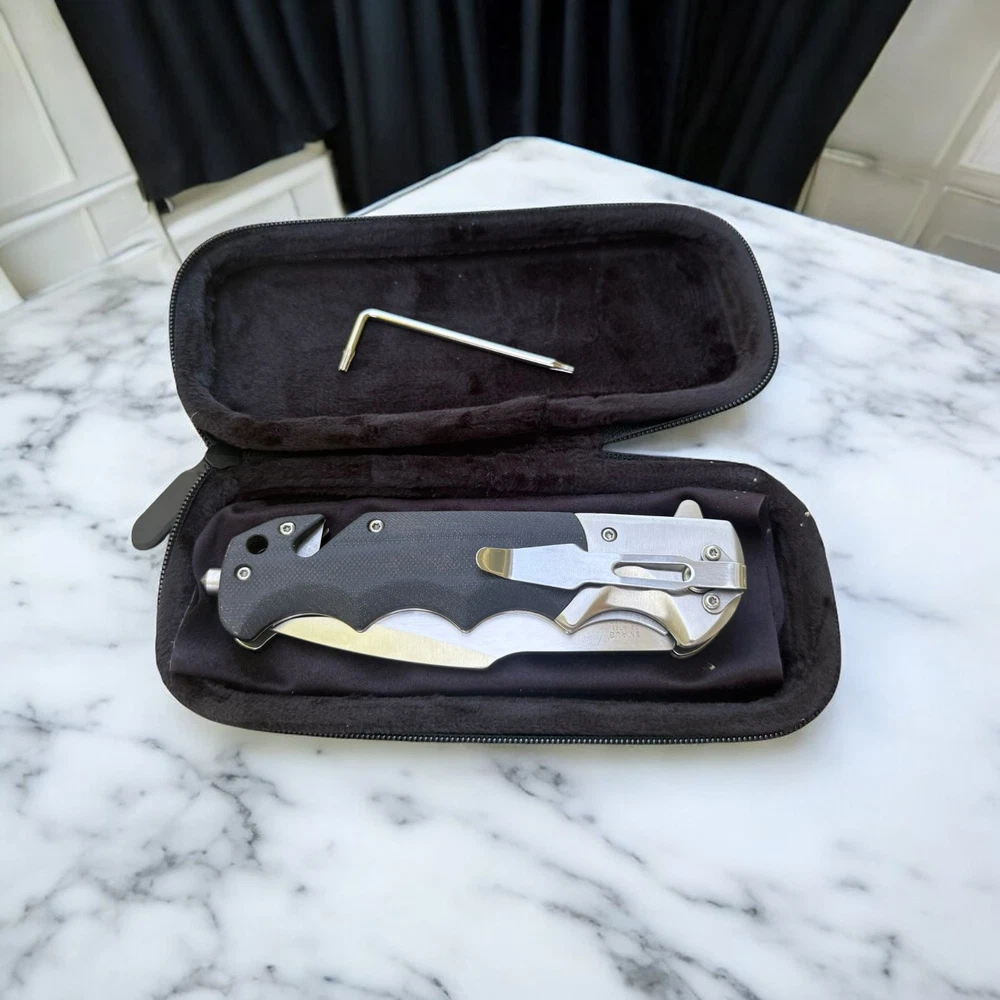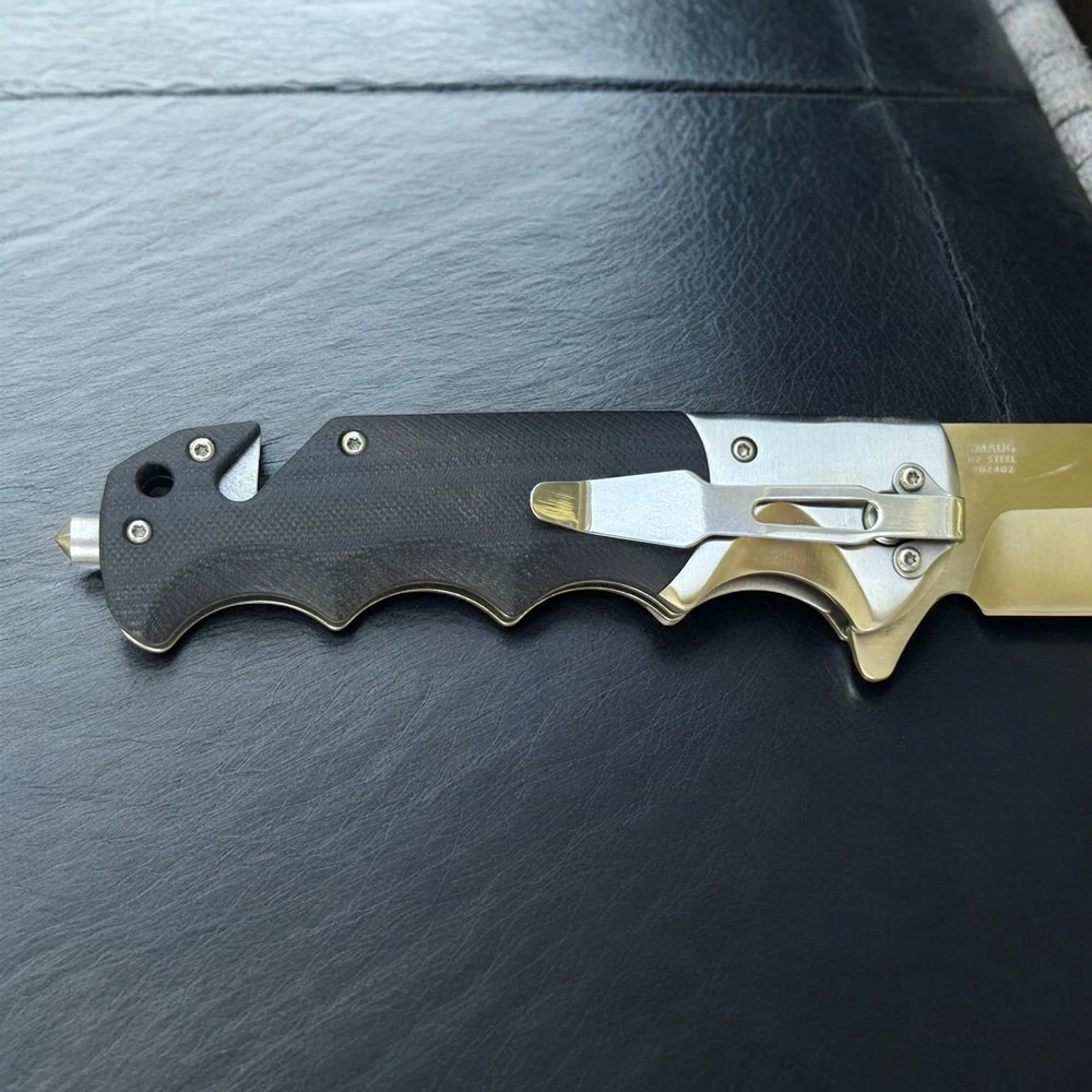 🔥 Built for performance, ready for anything — the Lothar “Smaug” folding knife is a tactical beast crafted with precision and purpose. This robust folder features a razor-sharp D2 steel blade that delivers exceptional edge retention and strength for demanding tasks. The smooth pivot system combined with a secure liner lock ensures confident deployment and solid lock-up, without the need for springs. Whether you're on the job, in the wild, or just everyday carry — this knife brings elite reliability and function. The ergonomic black G10 handle offers a grippy, contoured feel with finger grooves for max control. Integrated into the handle is a glass breaker and seatbelt cutter , turning this knife into a true emergency tool — not just a blade. 🗡️ Key Features: D2 steel drop point blade with sharp swedge and excellent edge retention Manual pivot system with flipper tab for controlled, responsive opening Rock-solid liner lock for safe, one-hand use Textured G10 handle with ergonomic finger grooves Built-in glass breaker and seatbelt cutter for emergency response Reversible deep-carry pocket clip Includes protective zippered case and adjustment tool Add the Lothar Smaug to your EDC lineup and be ready for anything. Disclaimer: Buyer must be 18+ and comply with all local, state, and federal laws.
