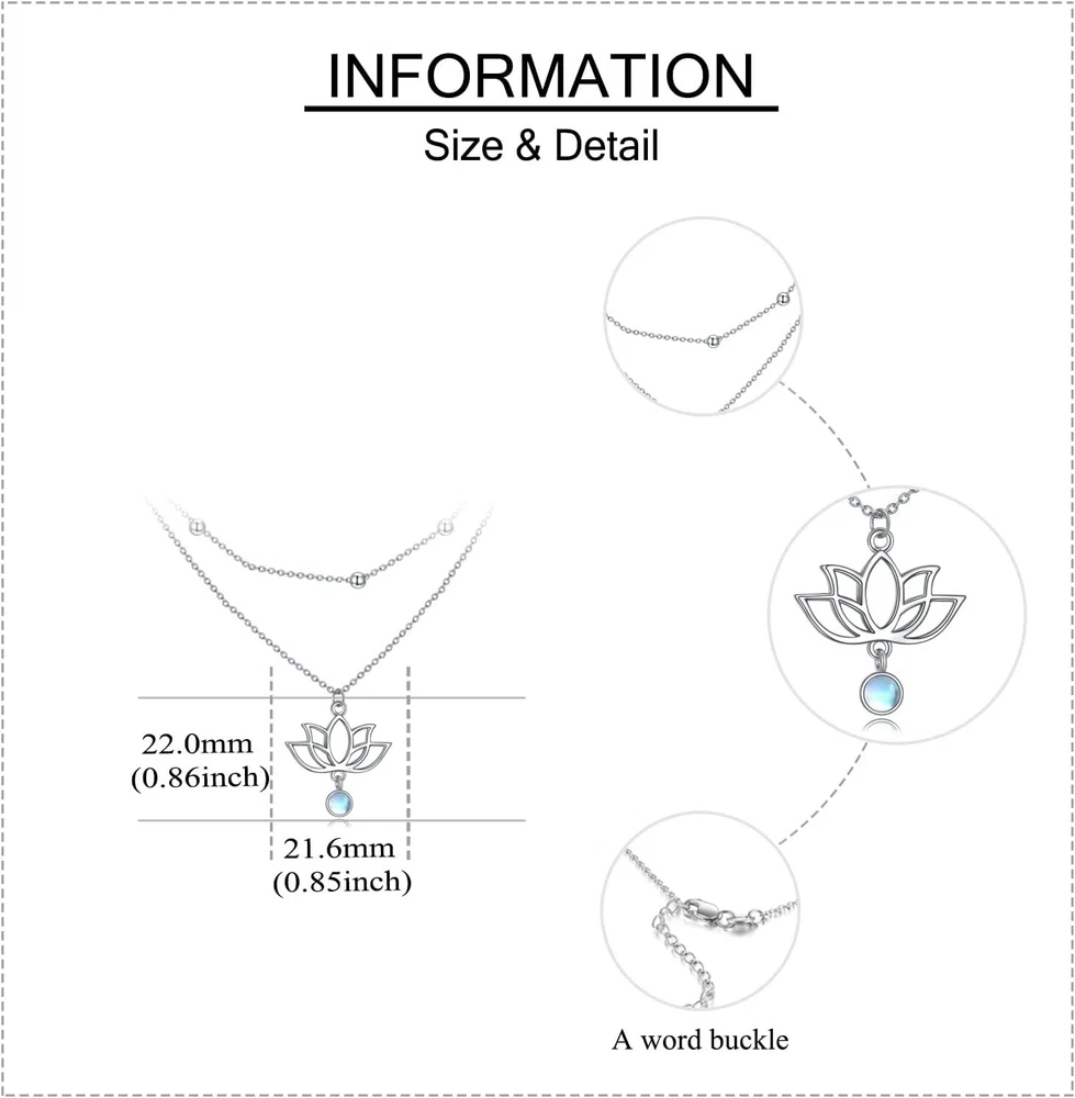 Lotus Layered Sterling Silver Stacked Choker Necklace Jewelry Gifts for Women Description Metal stamp 925 Sterling Silver Chain Ball Gem Type Moonstone Material Sterling Silver|Silver Metal Sterling Silver Setting Other-Setting-Type Department womens Number of stones 584 【DESIGN】Simple and stylish design sterling silver necklace featuring lotus flower pendant with bead chain, elegant, stylish and effortless 【SIZE】Length of the first beaded necklaces is 16", length of the second layering necklaces is 18"(extension 2") 【MATERIAL】Made of high quality 925 Sterling Silver. NEVER FADE. Anti-allergic, Nickel-free, Lead-free, Cadmium-free, safe for sensitive skin 【IDEAL】This layering necklaces packaged in a exquisite jewelry box.The necklace for Christmas, Valentines Day, congratulation, birthday, anniversary or any other special occasion for yourself, your best friend and your family. You can send it to your friend, sister, cousin or any anyone you loved ABOUT US We offer the best prices around on high quality products. Our E-store includes media such as books, movies, music and games while offering electronics, toys, sporting apparel, clothing, tools, general home, garden items and more.