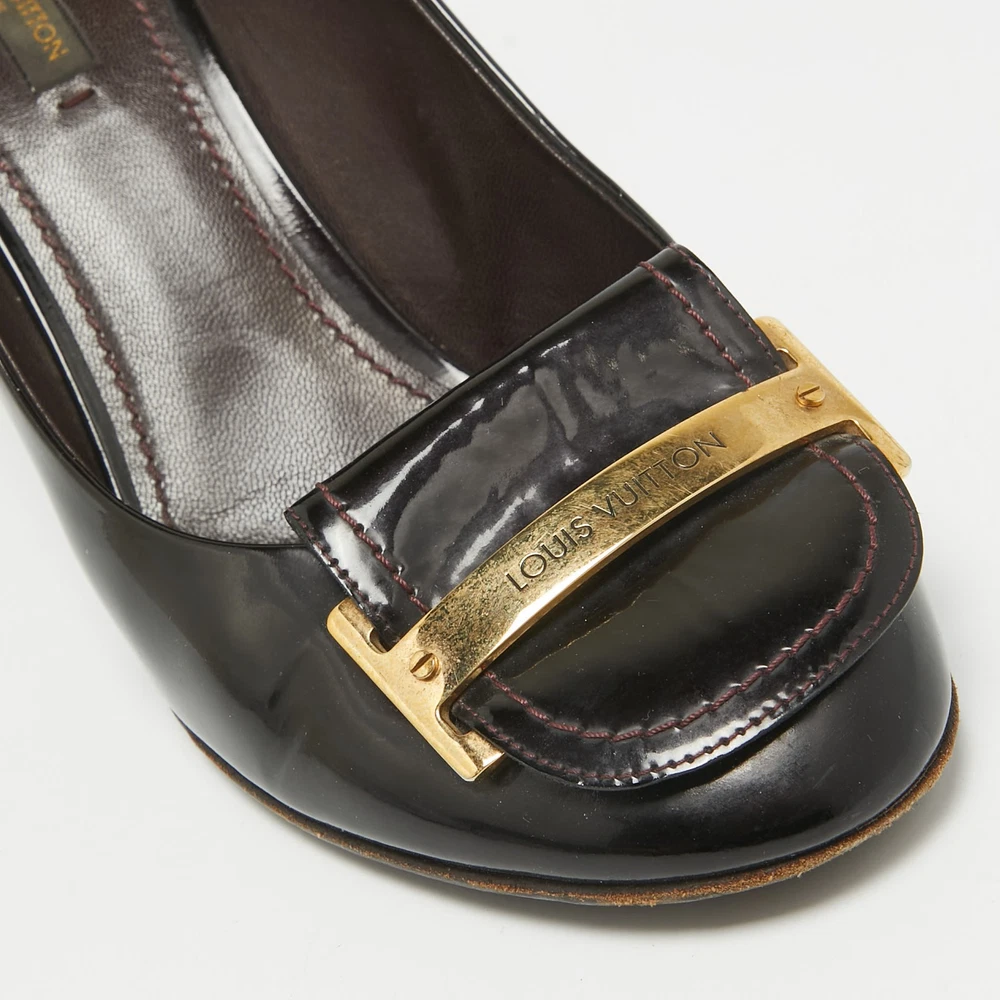 Exude sophistication with these Louis Vuitton Amarante patent leather pumps. Featuring a gold tone metal accent and 8.5 cm heels, they bring timeless luxury and a polished finish to any outfit.Certified by The Luxury Closet - This item has gone through a detailed authentication process overseen by our experts. We offer a lifetime guarantee of authenticity on all our items. Import duties, taxes and charges are not included in the item price. These charges are the buyers responsibility. Please check with your country’s customs office to determine what these additional cost will be prior to buying. Our eBay Store About Us Contact Us Add to Favorite Sellers Louis Vuitton Amarante Patent Leather Metal Logo Pumps Size 40 $192.5 Exude sophistication with these Louis Vuitton Amarante patent leather pumps. Featuring a gold tone metal accent and 8.5 cm heels, they bring timeless luxury and a polished finish to any outfit. Product Details Brand Color Burgundy Dimensions Material Patent Leather Size 40 Outsole Width 8.5 cm Outsole Length 25 cm Heel Height 8.5 cm Includes The Luxury Closet Packaging Certified by The Luxury Closet This item has gone through a detailed authentication process overseen by our experts. We offer a lifetime guarantee of authenticity on all our items. How We Check The in-house team of experts at The Luxury Closet is highly trained to verify the authenticity and the condition of the luxury products. They ensure that only 100% authentic items are put on sale.The evaluation process is unique with its own mix of assessment criteria and differs according to the category. Each item is evaluated based on the following combination of hallmarks, hardware, stitching, symmetry, material, craftsmanship, stamping, codes, hologram stickers, and packaging. Our authenticators also check if the items have been modified or amended (e.g., aftermarket diamonds, replaced batteries, repaired bags, etc.) International Buyers Import duties, taxes and charges are not included in the item price. These charges are the buyers responsibility. Please check with your country’s customs office to determine what these additional cost will be prior to buying.