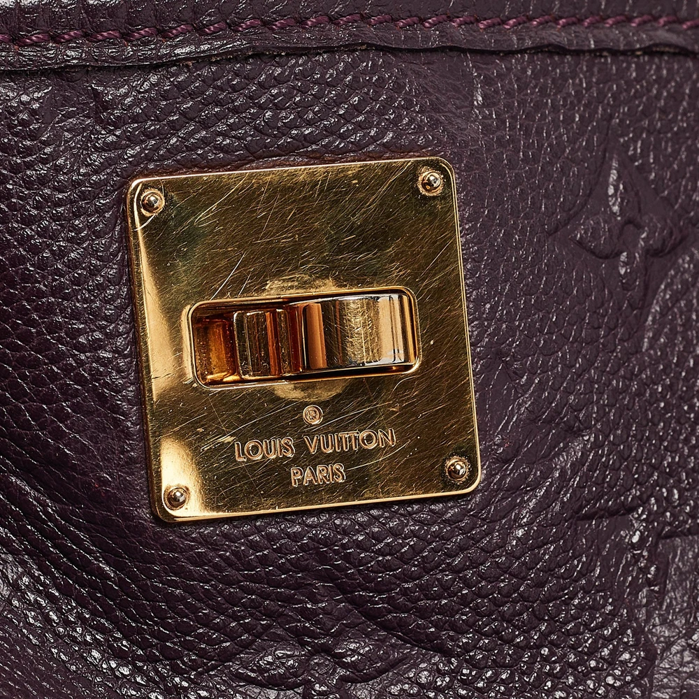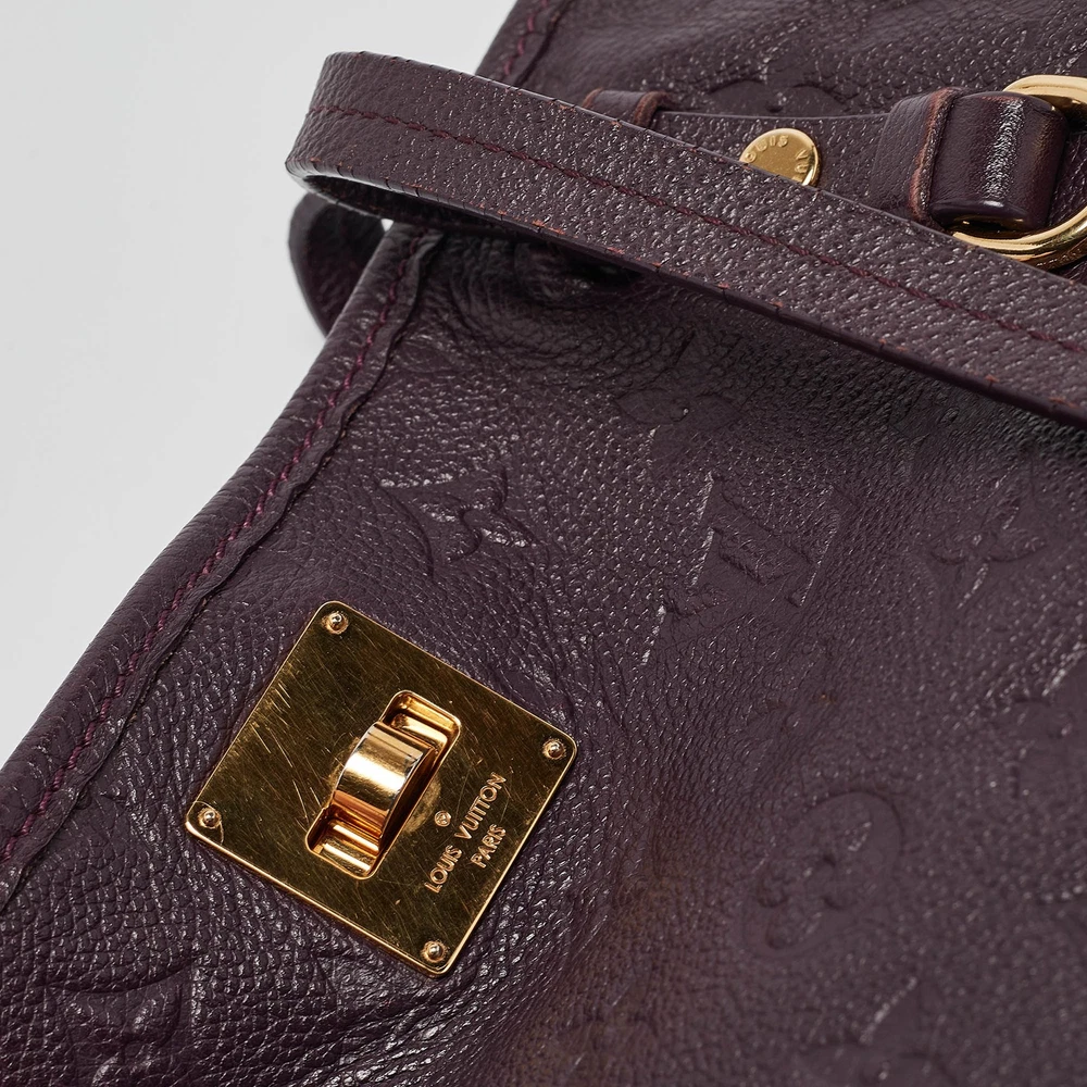 The Citadine GM bag from Louis Vuitton is an accessory youll want to be seen carrying. Crafted using Monogram Empreinte leather, the bag is fitted with a gold tone front lock and metal feet. The canvas lined interior is spacious and the dual handles are easy to hold.Certified by The Luxury Closet - This item has gone through a detailed authentication process overseen by our experts. We offer a lifetime guarantee of authenticity on all our items. Import duties, taxes and charges are not included in the item price. These charges are the buyers responsibility. Please check with your country’s customs office to determine what these additional cost will be prior to buying. Our eBay Store About Us Contact Us Add to Favorite Sellers Louis Vuitton Aube Monogram Empreinte Leather Citadine GM Bag $336.6 The Citadine GM bag from Louis Vuitton is an accessory youll want to be seen carrying. Crafted using Monogram Empreinte leather, the bag is fitted with a gold tone front lock and metal feet. The canvas lined interior is spacious and the dual handles are easy to hold. Product Details Brand Color Purple Dimensions Height: 37 cm, Width: 16 cm, Length: 31 cm Material Leather Size Outsole Width Outsole Length Heel Height Includes The Luxury Closet Packaging Certified by The Luxury Closet This item has gone through a detailed authentication process overseen by our experts. We offer a lifetime guarantee of authenticity on all our items. How We Check The in-house team of experts at The Luxury Closet is highly trained to verify the authenticity and the condition of the luxury products. They ensure that only 100% authentic items are put on sale.The evaluation process is unique with its own mix of assessment criteria and differs according to the category. Each item is evaluated based on the following combination of hallmarks, hardware, stitching, symmetry, material, craftsmanship, stamping, codes, hologram stickers, and packaging. Our authenticators also check if the items have been modified or amended (e.g., aftermarket diamonds, replaced batteries, repaired bags, etc.) International Buyers Import duties, taxes and charges are not included in the item price. These charges are the buyers responsibility. Please check with your country’s customs office to determine what these additional cost will be prior to buying.