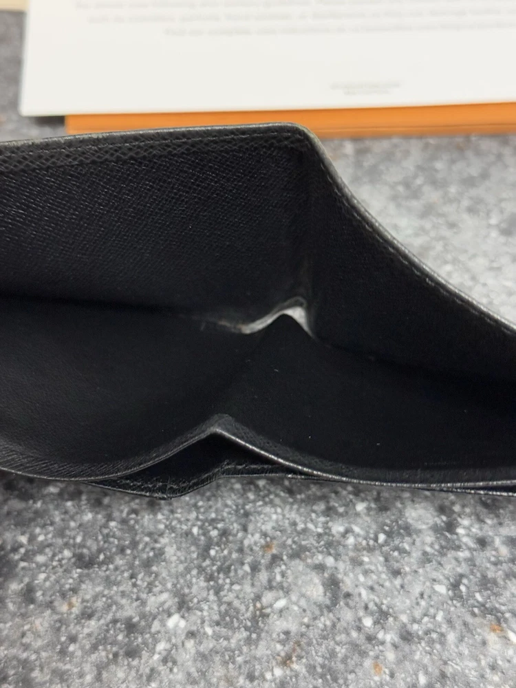 Louis Vuitton Portefeuille Black Taiga Leather Multiple Men’s Bifold Wallet This louis vuitton black multiple men’s bifold wallet is in good preowned condition! The wallet features five card slots, two pockets, and two bill slots. Very spacious! The wallet comes with its box, dust bag, ribbon, gift tag, “thank you for shopping with louis vuitton” paper, and the receipt holder. Full inclusion!!! Model Number: M30531 This wallet is still on the lv website currently selling for $630. Date Code: CT2029 Will ship the next day via usps! Please let me know if you have any questions or offers! The wallet had initials inside beside the lv heat stamp that have been rubbed out and also the wallet has some color loss on the corners from usage.