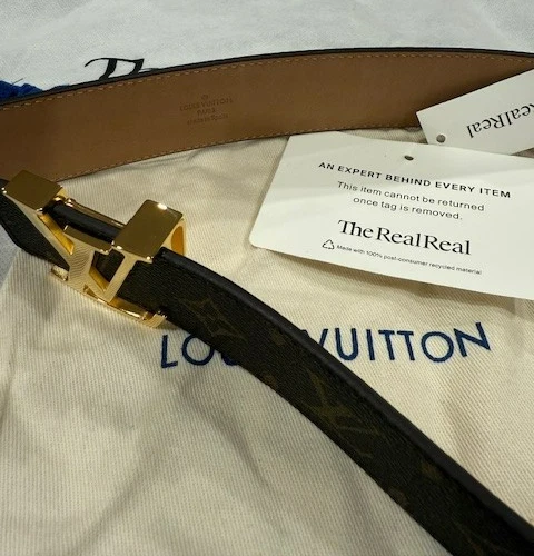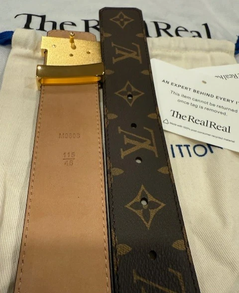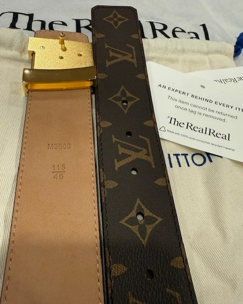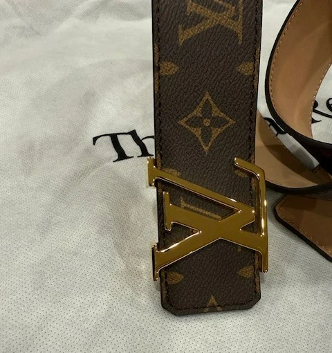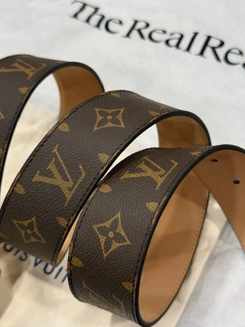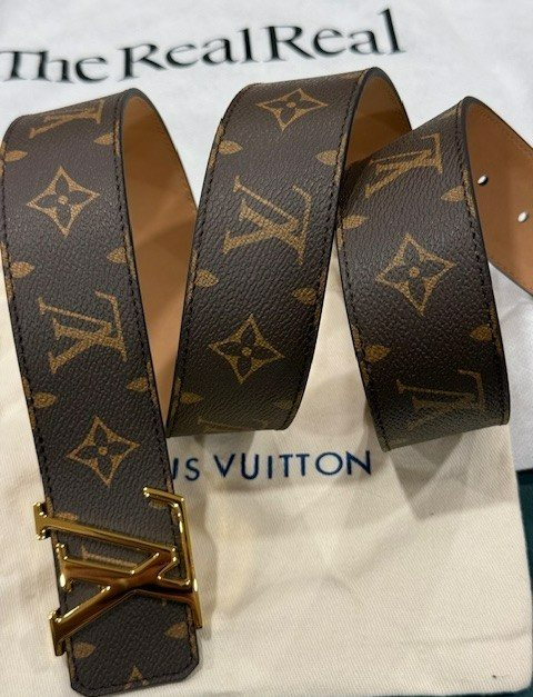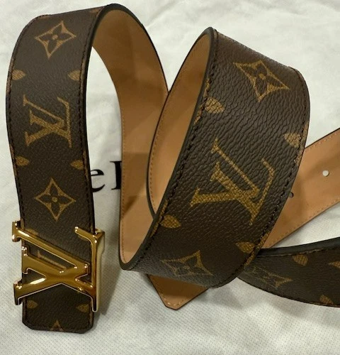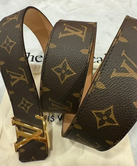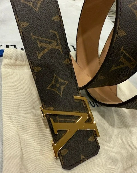 Louis Vuitton Leather Monogram Belt – Brown with Gold Buckle (Size 115 cm) Louis Vuitton monogram belt in classic brown canvas, finished with a gold-plated LV buckle. Timeless and versatile, perfect for casual or dress wear. Details: Brand: Louis Vuitton Color: Brown Monogram Buckle: Gold-plated LV buckle Size: 115 cm Fits waist: 40-42 Width: 1.5 inches Condition: Never worn – Excellent condition A classic LV accessory in pristine condition.
