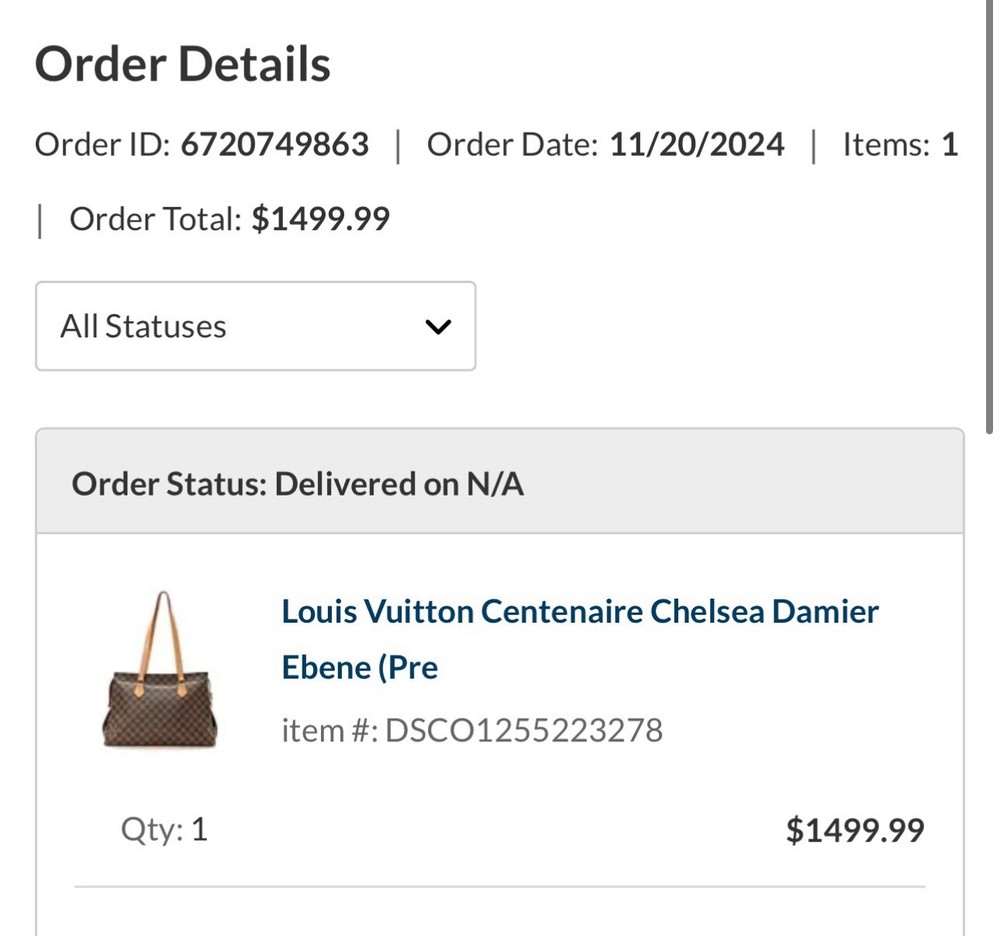 Louis Vuitton Centenaire Chelsea Damier Ebene (pre-owned) I bought this pre-owned from the military exchange pre-owned handbag program. Authentic with the paperwork I received. She never used it just didn’t like the size because it was too big but I missed my return date because it was a Christmas gift. I paid 1499 as can be seen on the receipt from the website in the pictures. I’m taking a loss but the bag is in pristine condition.