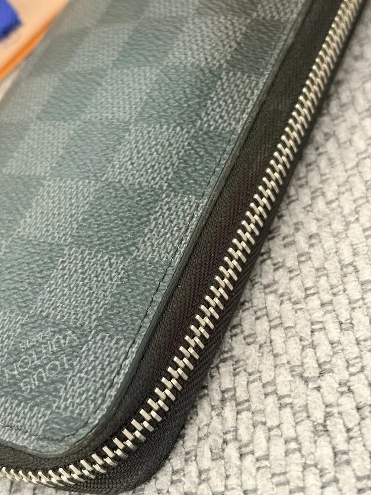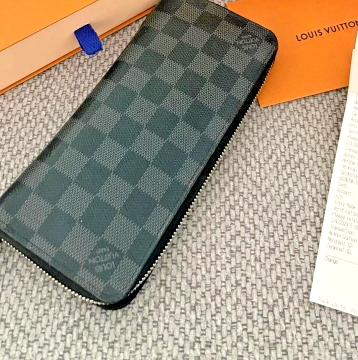 Louis Vuitton Damier Graphite Zippy Wallet Vertical / Brazza Wallet – Luxury Long Wallet This authentic Louis Vuitton Damier Graphite Zippy Wallet Vertical / Brazza Wallet is a stylish and functional everyday essential, crafted from the iconic black and grey Damier Graphite coated canvas. Designed for modern convenience, this wallet combines luxury with practicality, making it perfect for daily use or travel. The wallet features a secure zip-around closure that opens to a well-organized interior with multiple card slots, spacious compartments for cash, and a zippered pocket for coins or valuables. Its sleek vertical design allows for easy storage while maintaining a slim profile. Features: Signature Damier Graphite coated canvas exterior Smooth leather lining with premium craftsmanship Zip-around closure for added security Multiple card slots and bill compartments Interior zip pocket for coins or essentials Elegant silver-tone hardware