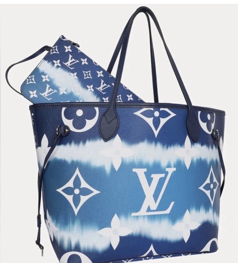 Louis Vuitton Escale Giant Neverfull MM Tie Dye Tote Handle Shoulder Bag Blue